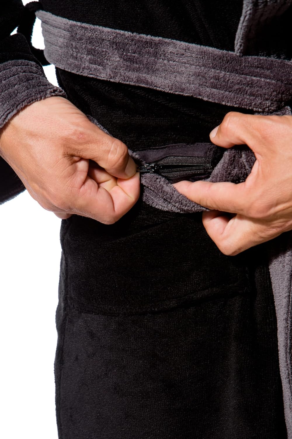- KAPUZE UND 2 GROSSE TASCHEN – Der Bademantel mit Kapuze hat vorne zwei aufgesetzte Taschen, die Ihnen viel Platz bieten und die Hände warmhalten. Zusätzlich befindet sich im Inneren von einer der beiden Fronttaschen eine kleinere „versteckte“