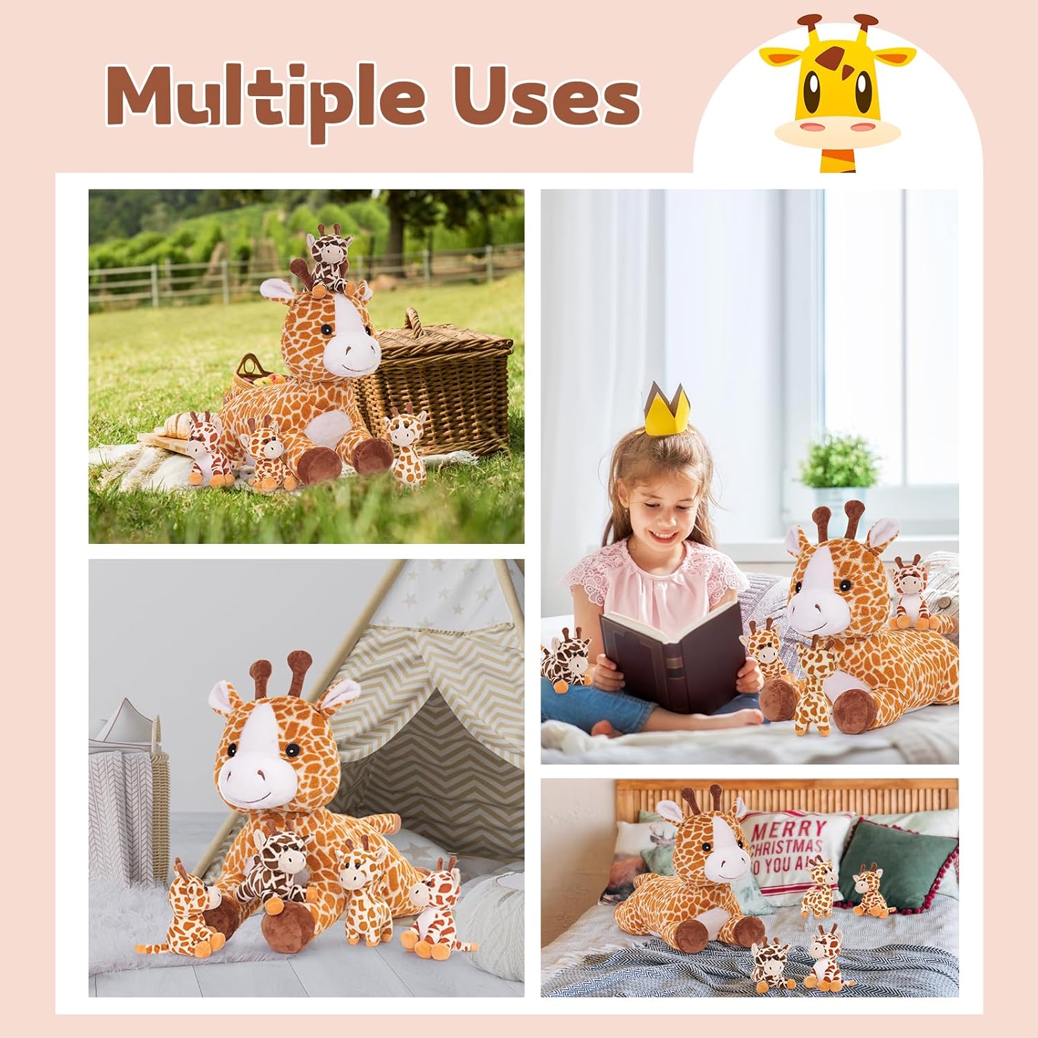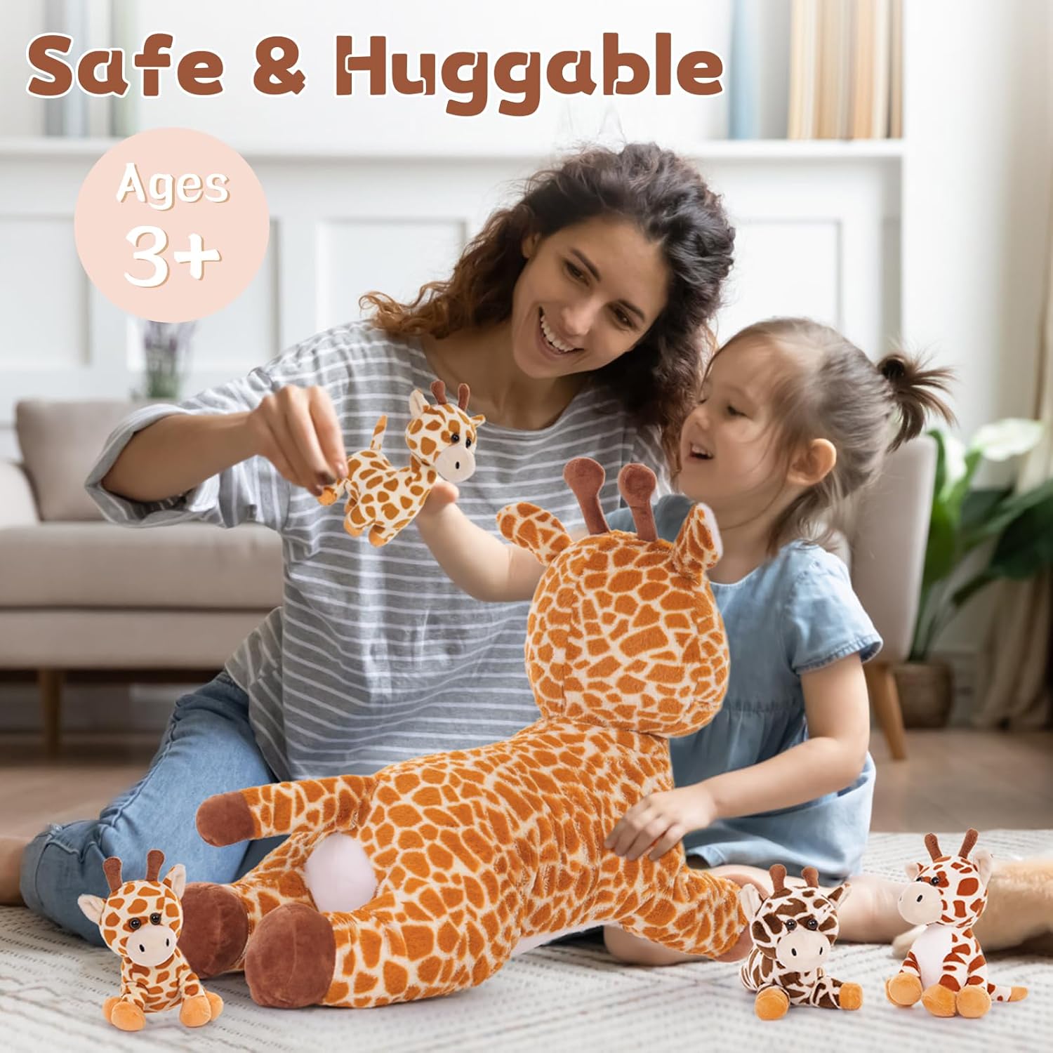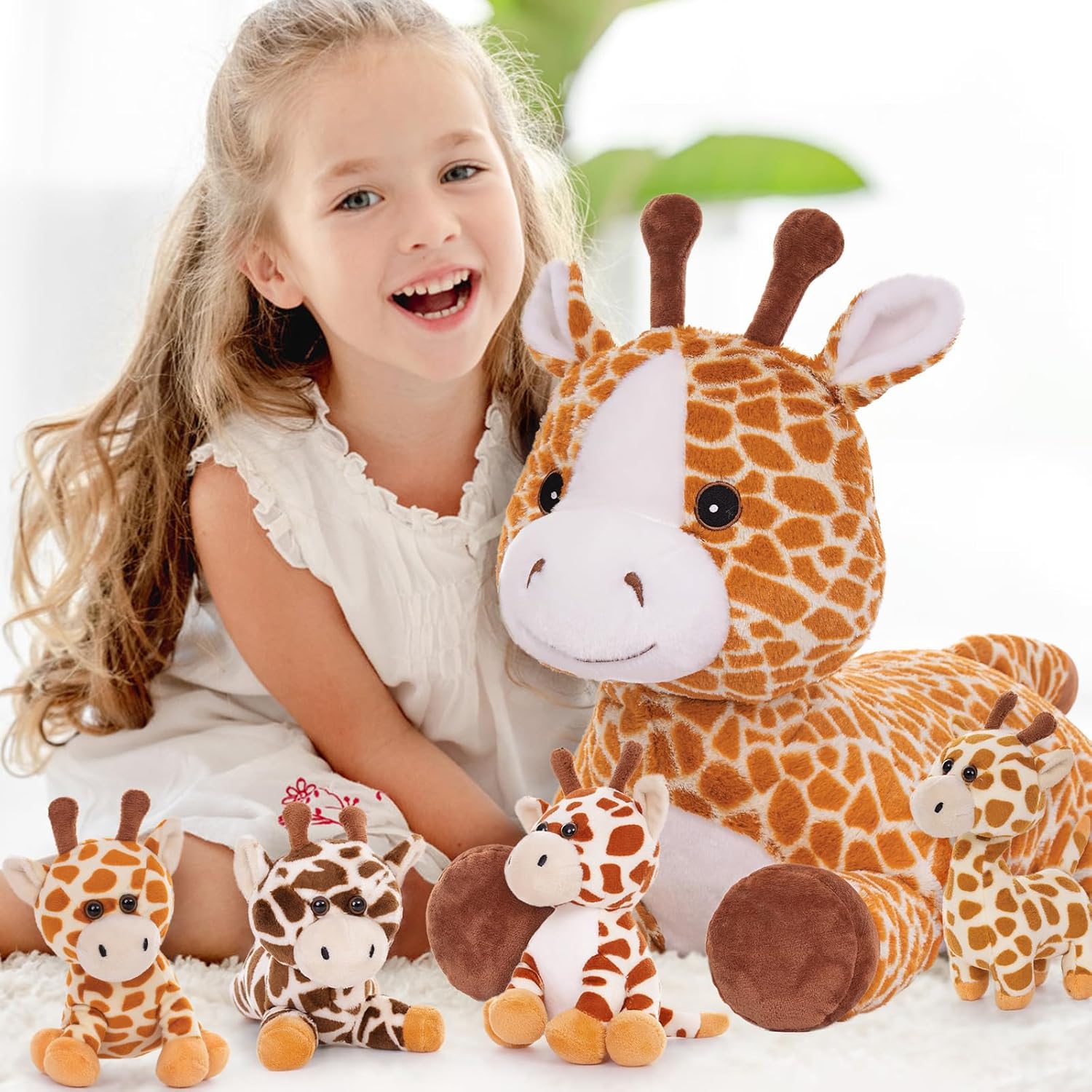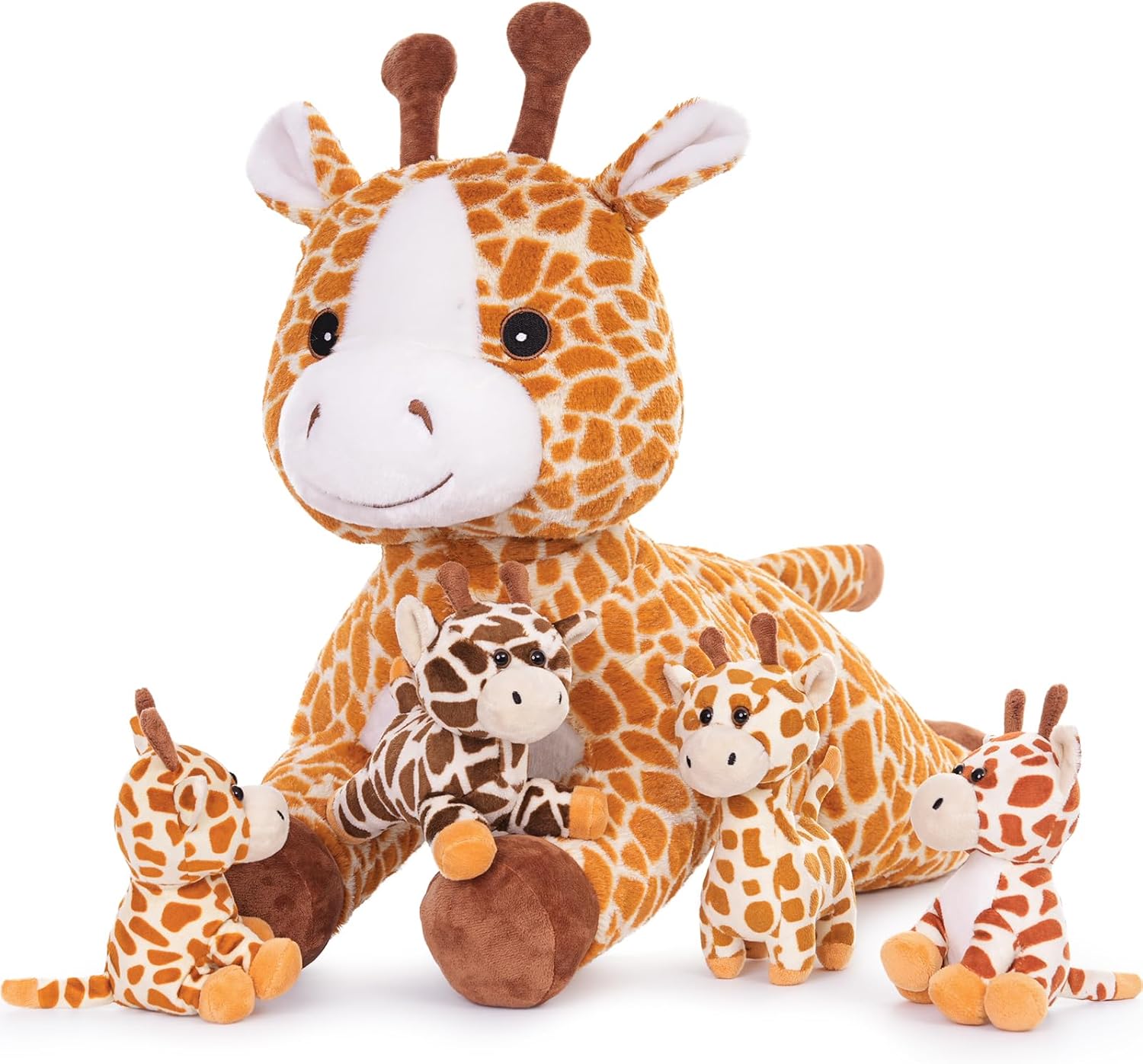 - Gross Plüsch-Giraffe mit 4 Baby: Giraffe Mama: 55 × 20 × 25 cm gross, mit 3 kleinen Baby im Bauch, ist ein Lernspielzeug, das die Kreativität und Vorstellungskraft von Kindern anregt. Kann die Hand-Auge-Koordination von Kindern verbessern und die