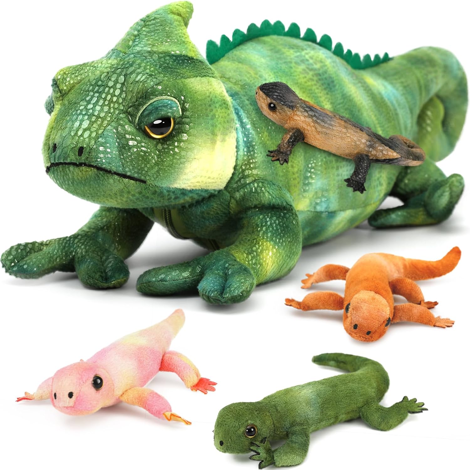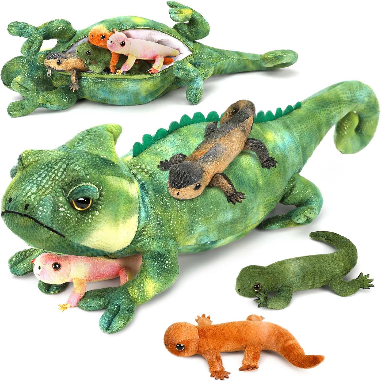 - 68cm lang gross Eidechse mit 4 kleinen Babys: Lassen Sie das Kind den gesamten Lebensverlauf der Eidechse verstehen, das Plüsch Lizard-Plüschspielzeugset eignet sich zum Teilen und gemeinsamen Spielen, regt die Vorstellungskraft und Kreativität an