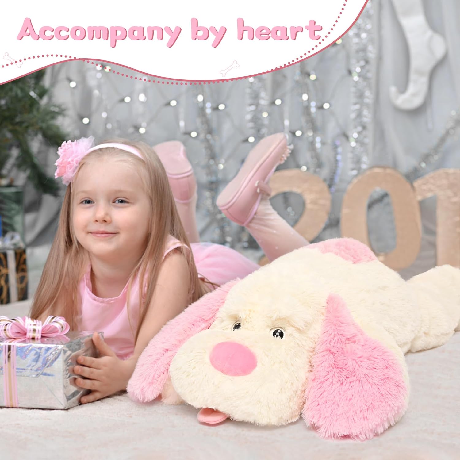 MorisMos 80cm lang Hund Kuscheltier gross XXL, weich Rosa Hund Plüschtier Stofftier, riesen Gefüllte
