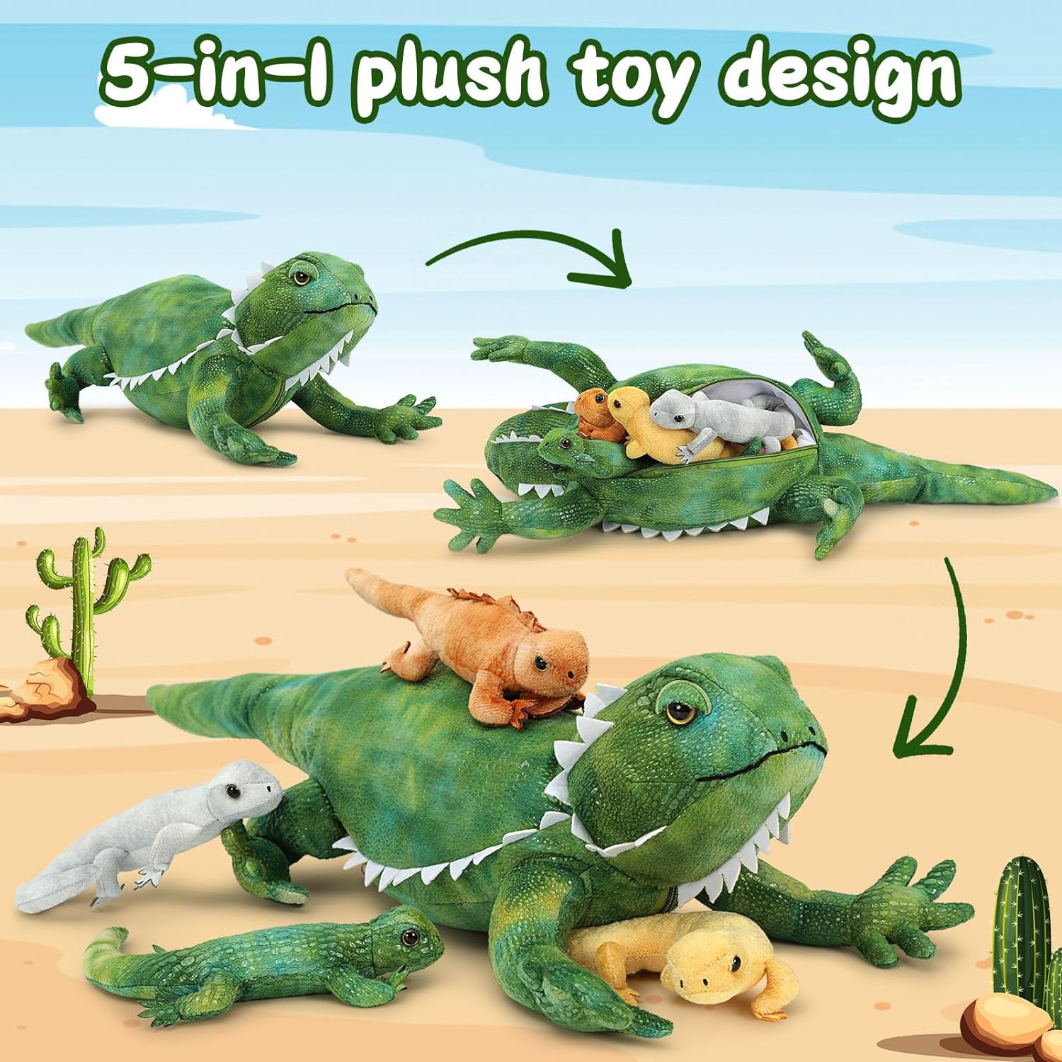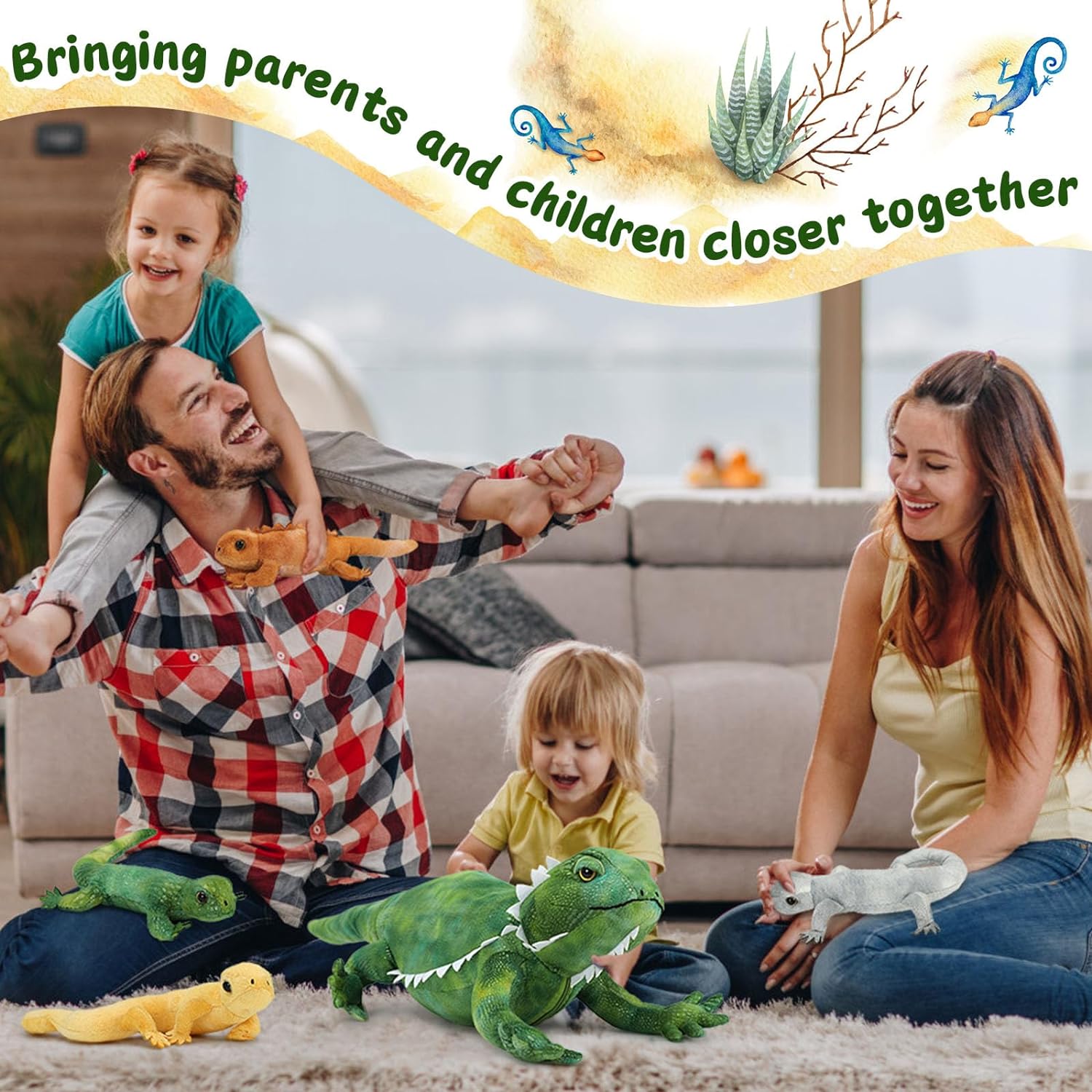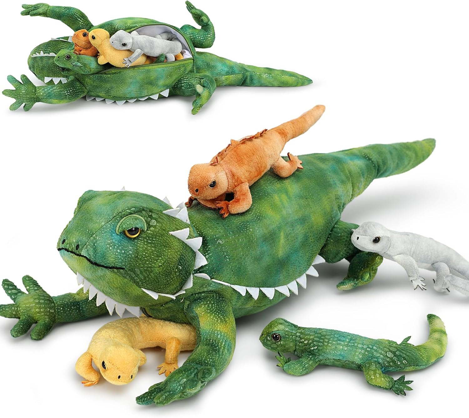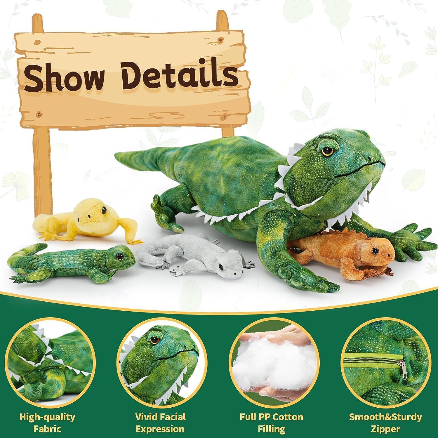 - 🦕 [67cm lang gross Eidechse mit 4 kleinen Babys] Lassen Sie das Kind den gesamten Lebensverlauf der Eidechse verstehen, das Plüsch Lizard-Plüschspielzeugset eignet sich zum Teilen und gemeinsamen Spielen, regt die Vorstellungskraft und Kreativität