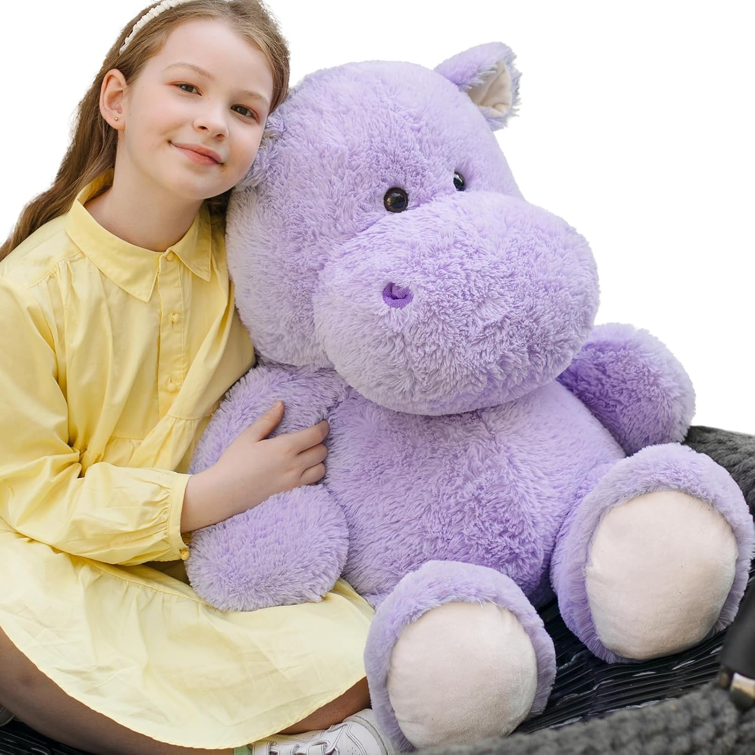 - [Gross Plüsch-Flusspferd] Nilpferd: 92 × 50 × 45 cm gross, gross genug zum Kuscheln oder als Schlafbegleiter,Sein super flauschiges und weiches Fell lädt zum Kuscheln, Knuddeln, Umarmen,Tolle Wahl für Kinder und Erwachsene jeden Alters, ist Freund