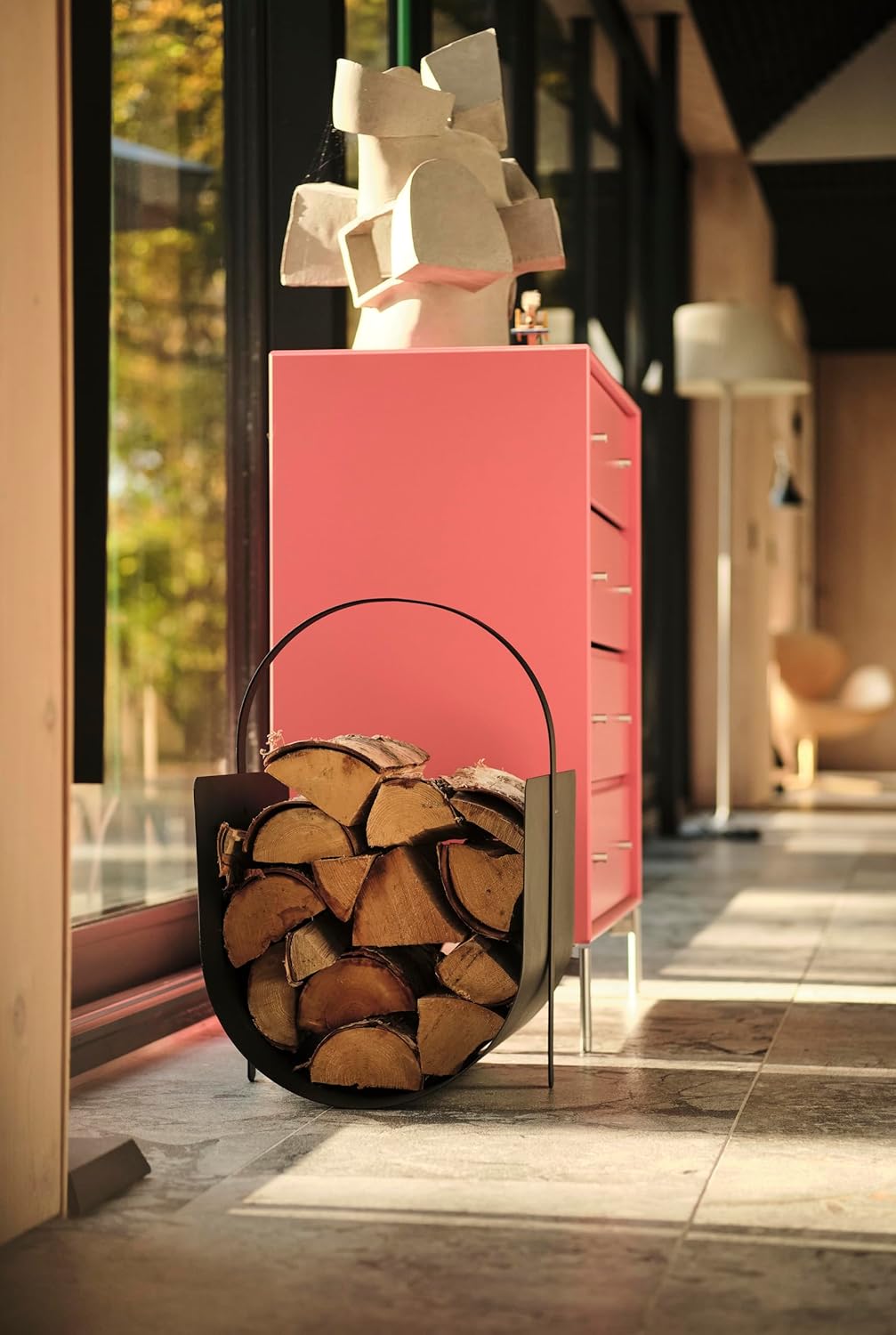 - Hochwertige Verarbeitung – Die sichtbaren Enden an der Kaminholztasche aus Metall machen den geschwungenen Tragekorb für Feuerholz zum dekorativen Holzlager im Indoor-Bereich.