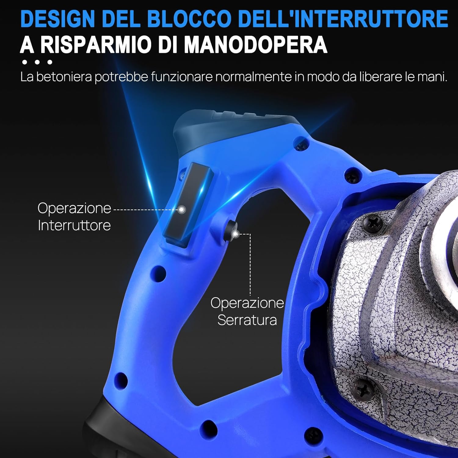 - 【Variable Geschwindigkeit】:Der Betonmischer ist mit einer variablen Geschwindigkeit mit 6 Geschwindigkeiten ausgestattet, die viele verschiedene Materialien verarbeiten kann, verhindert das Spritzen von gemischten Materialien aufgrund der hohen