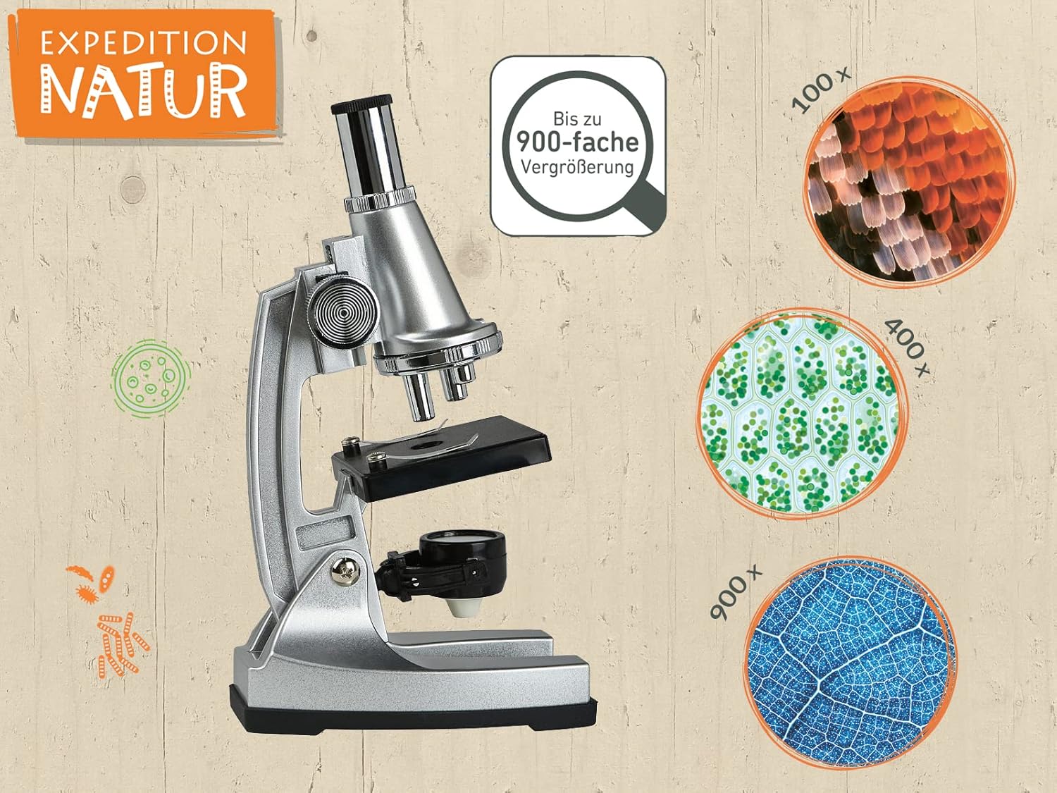 - Beeindruckende Vergrösserung ✓ In 3 verschiedenen Stufen können kleine Forscher die Präparate mit 100x, 400x und sogar 900x Vergrösserung betrachten und dabei eine völlig neue Welt erforschen