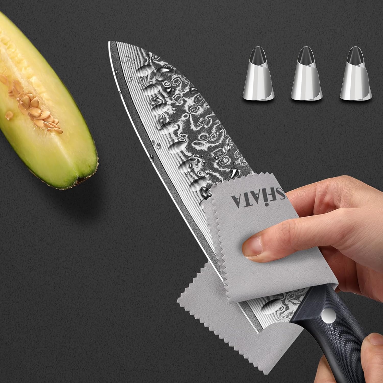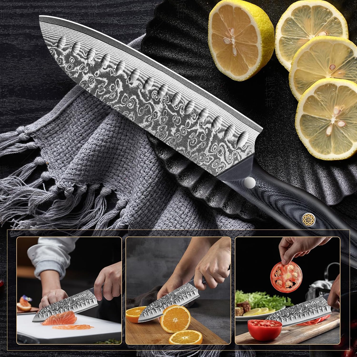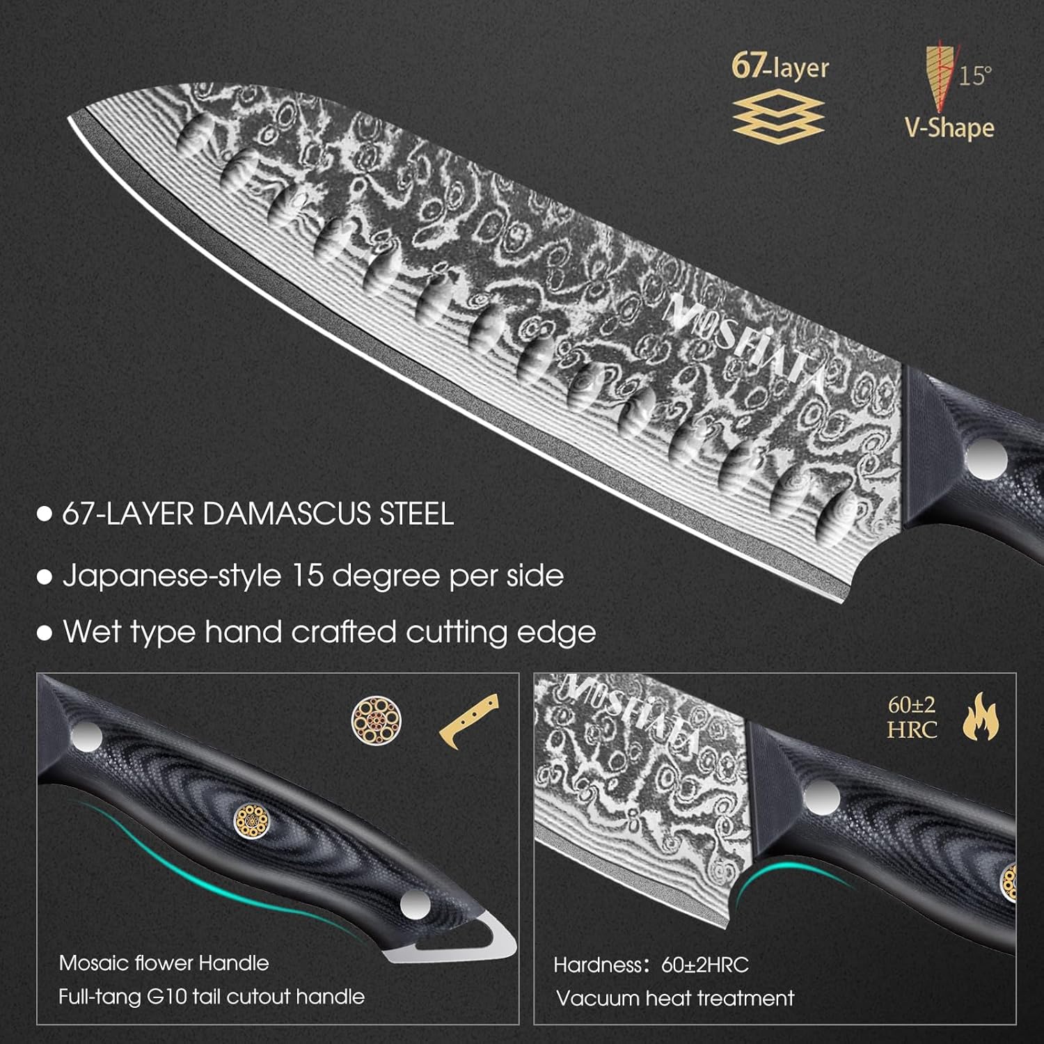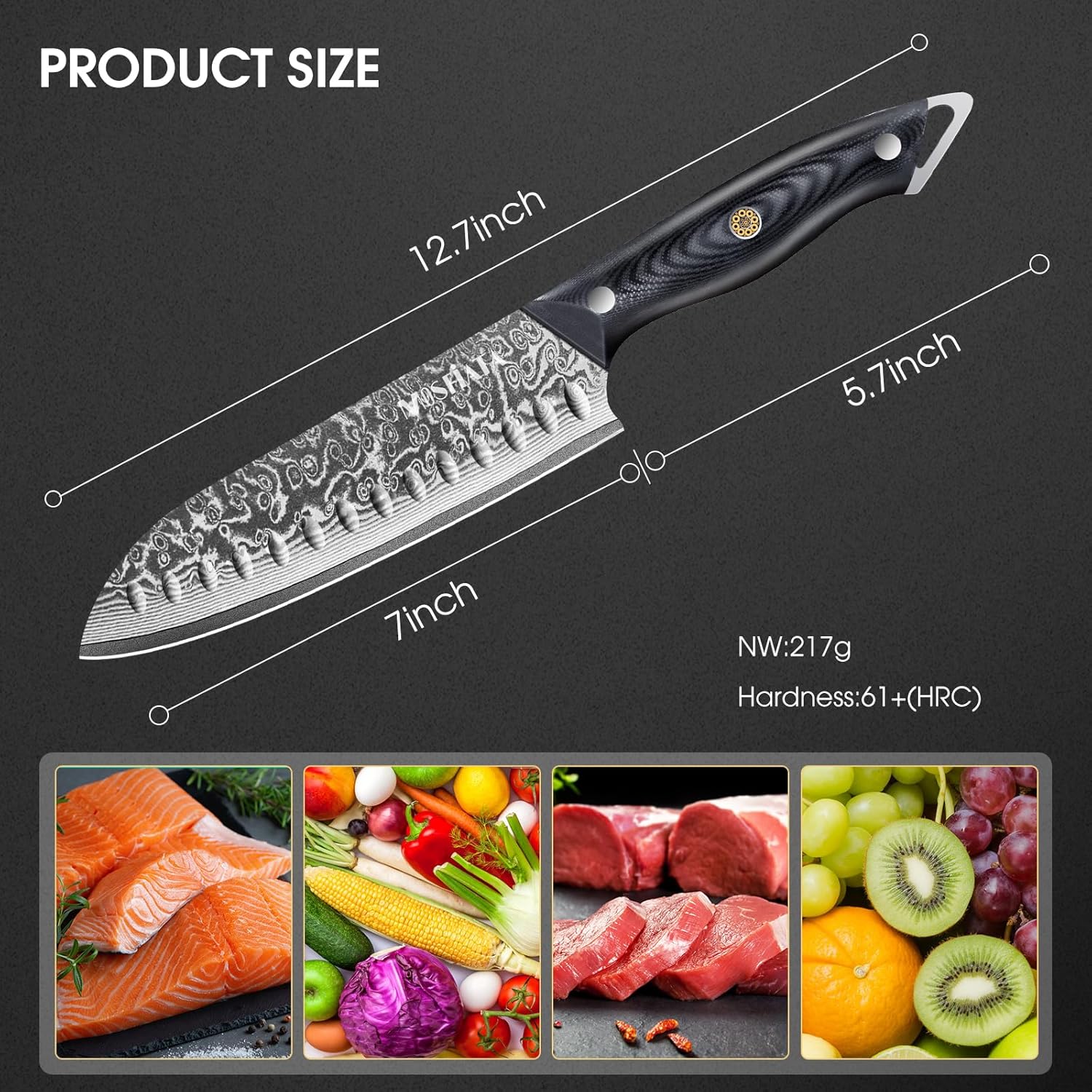 - Vielseitiges Küchenwerkzeug für Profis und Hobbyköche:Das MOSFiATA 7-Zoll-Damaskusmesser (Dreifachmesser) ist ein vielseitiges Küchenwerkzeug, das sowohl für Profis als auch für Hobbyköche geeignet ist. Ob das Schneiden von Gemüse, Fleisch,