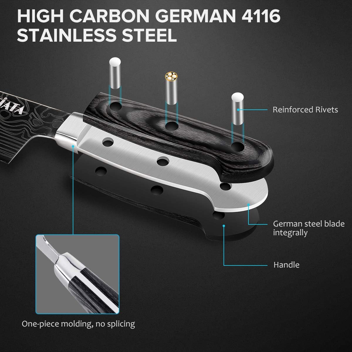- 【MOSFiATA-Küchenmesser】 - Küchenmesser besteht aus hochwertigem deutschem Edelstahl, der Rost, Korrosion und Verfärbung widersteht. Die Klinge des Kochmesser ist 10 Zoll lang.Es kann für Ihre täglichen Küchenaufgaben zum Hacken, Schneiden,