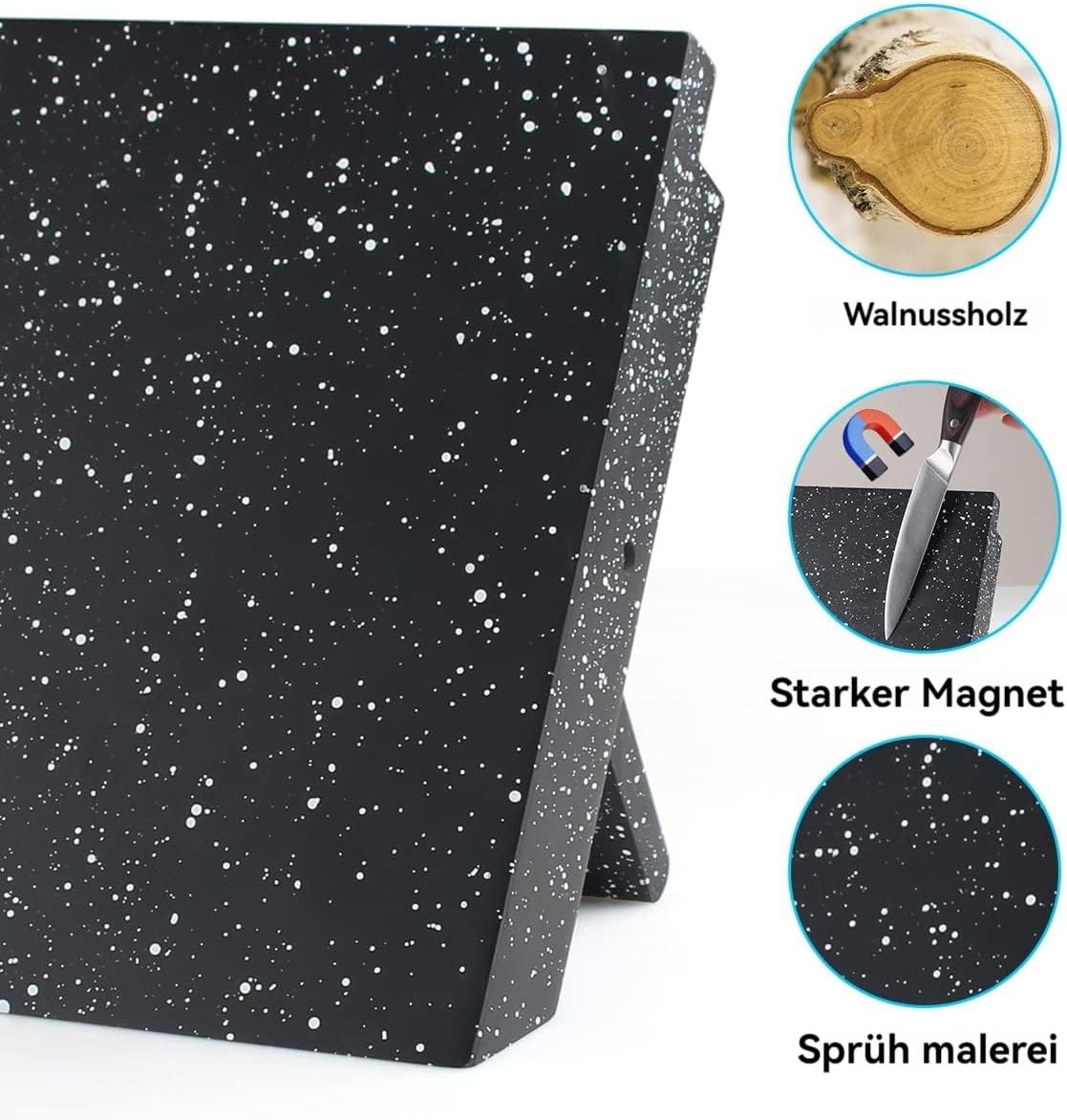 - AUSGEZEICHNETE ORGANISATION DER MESSER: Es können bis zu 7-9 Messer aufbewahrt werden, egal ob es sich um ein grosses Kochmesser oder ein kompaktes Obstmesser handelt, es kann ordentlich aufbewahrt werden, um sicherzustellen, dass jedes Messer seinen
