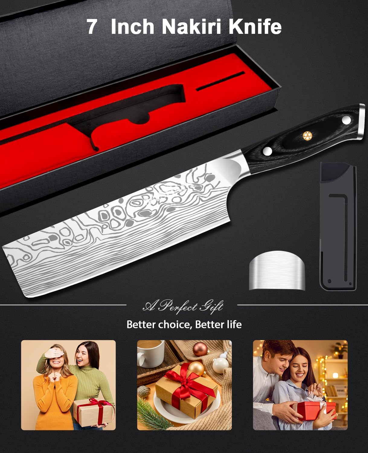 - [Perfektes Geschenk]: Das Messer ist in einer hochwertigen schwarzen Geschenkbox verpackt. Es ist ein perfektes Geschenk für Mutter, Vater, Grosseltern oder Freunde. Darüber hinaus kann die Verwendung einer Scheide kleine Kinder und andere Familienmitglieder vor Schaden schützen. Hinweis: Es ist kein Damaststahl.