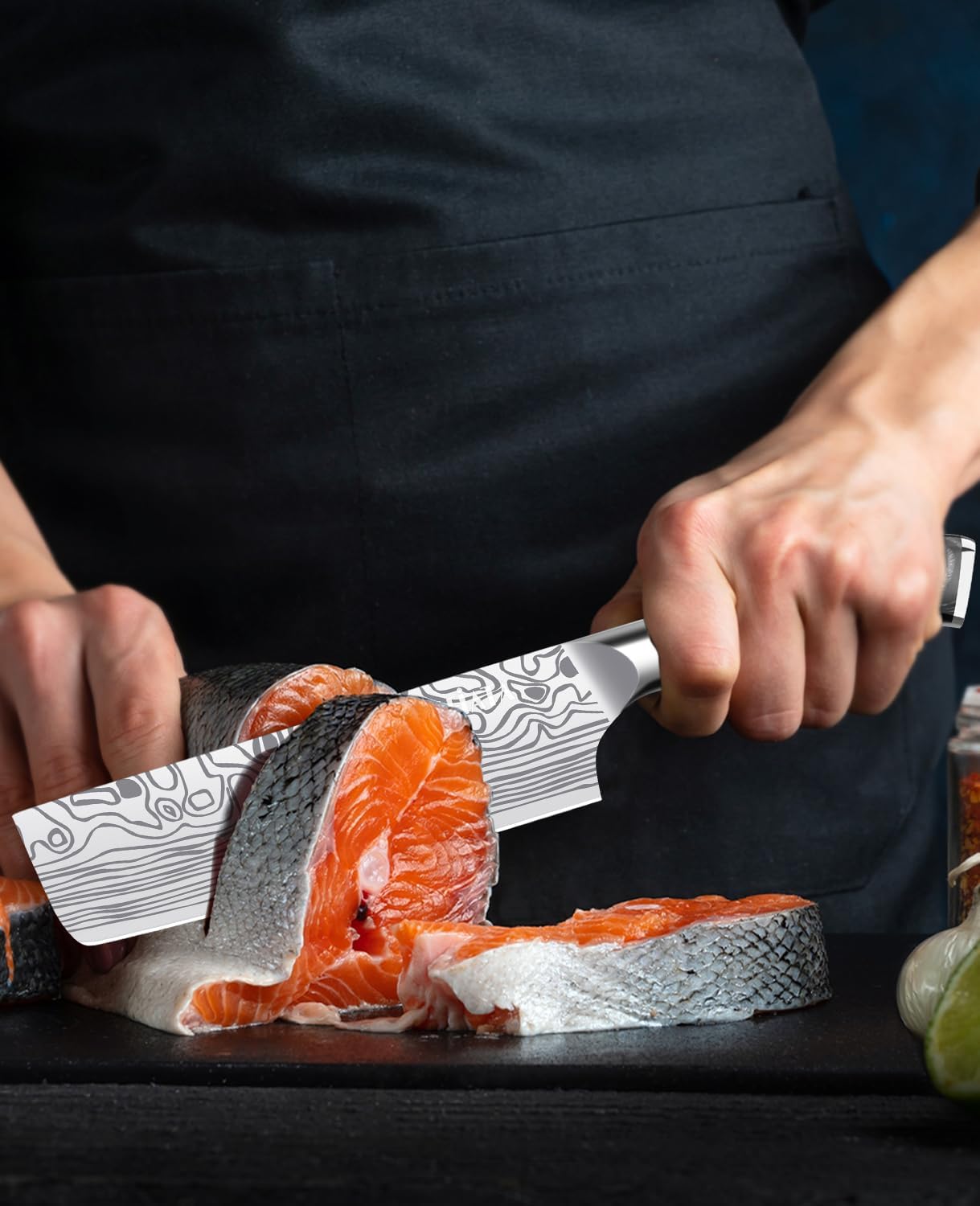 - 【Hochwertige Edelstahlklinge】Das professionelle Küchenmesser aus hochwertigem Karbon Edelstahl und enthält 0,6-0,75% Kohlenstoff, 16-18% Chrom, 56-58 Rockwell-Härte, Es hat hoher Korrosionsbeständigkeit,hoher Härte,Verschleissfestigkeit. Nach langer Gebrauch beschlagen oder verblassen Kochmesser nicht.