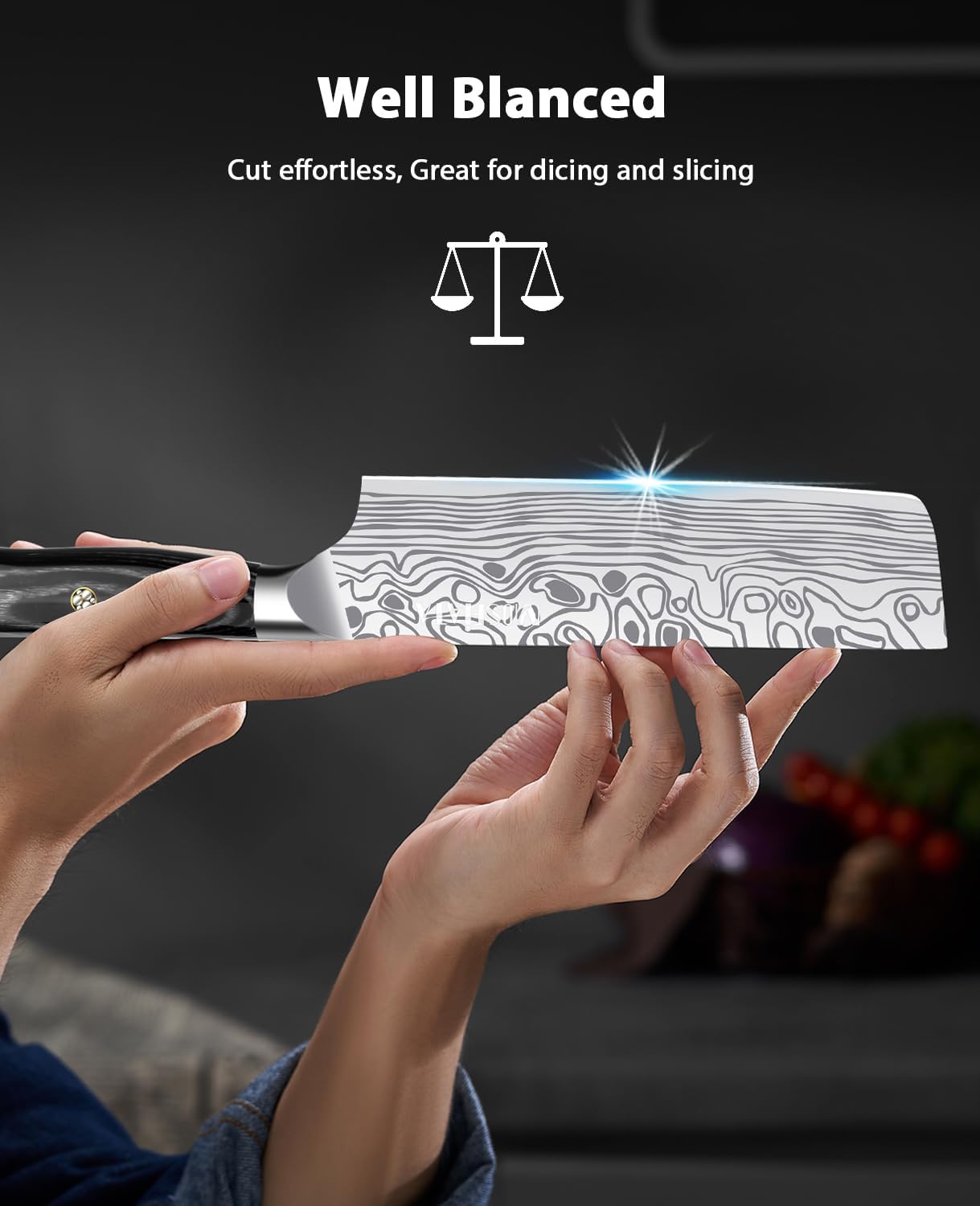 - [Grösse und Gewicht] Die Standardlänge des Nakiri-Kochmessers beträgt 7 Zoll. Dies ist einfacher zu bedienen, um verschiedene Funktionen wie Zerkleinern, Würfeln und Schneiden zu erreichen. Unser Kochmesser wiegt 8,8 Unzen, sodass Sie sich haltbarer und müheloser fühlen In grosse Lebensmittelstücke.