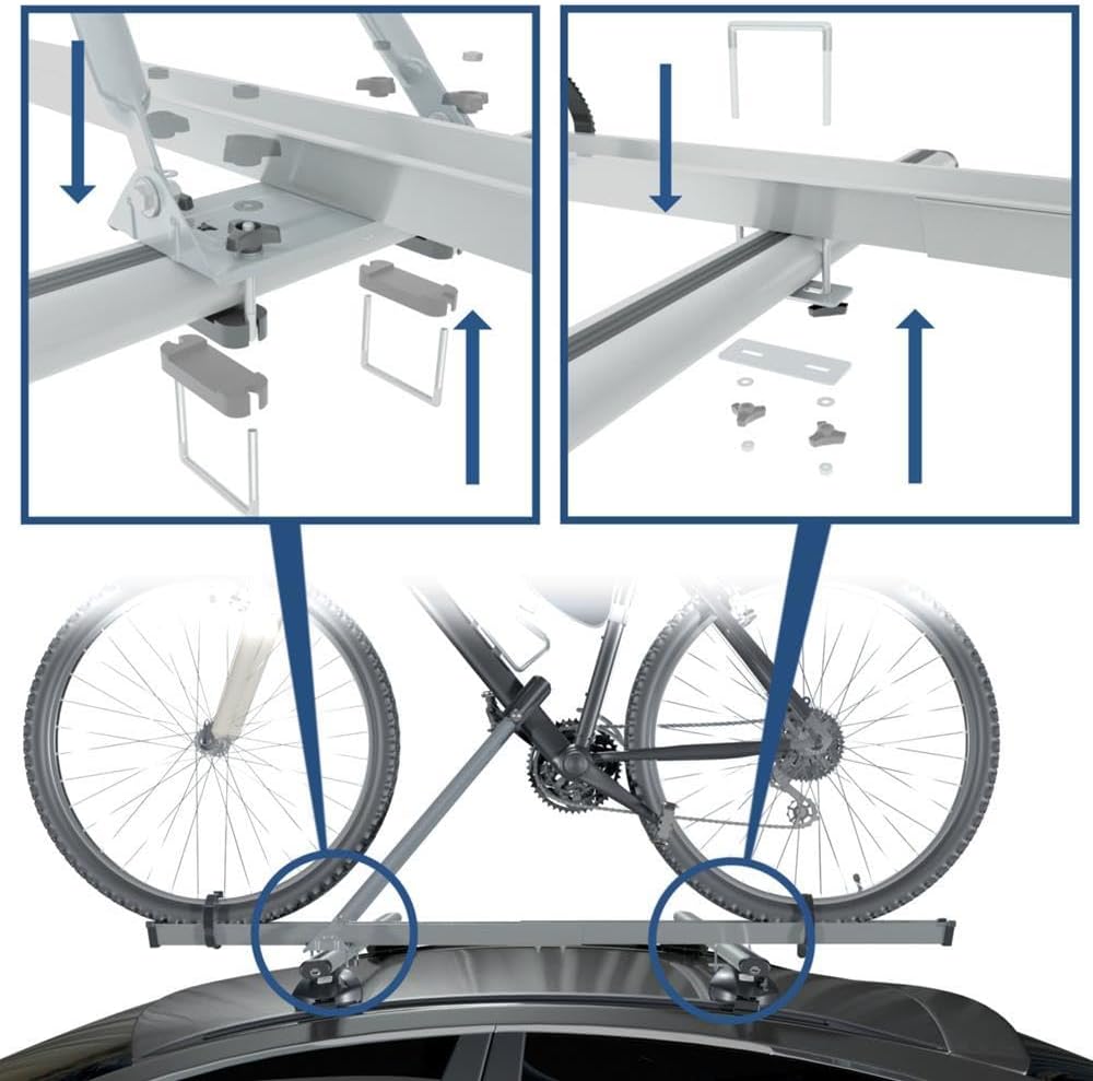 • 2x Universal Fahrradhalter für Montage auf einem Dachträger (Balken).