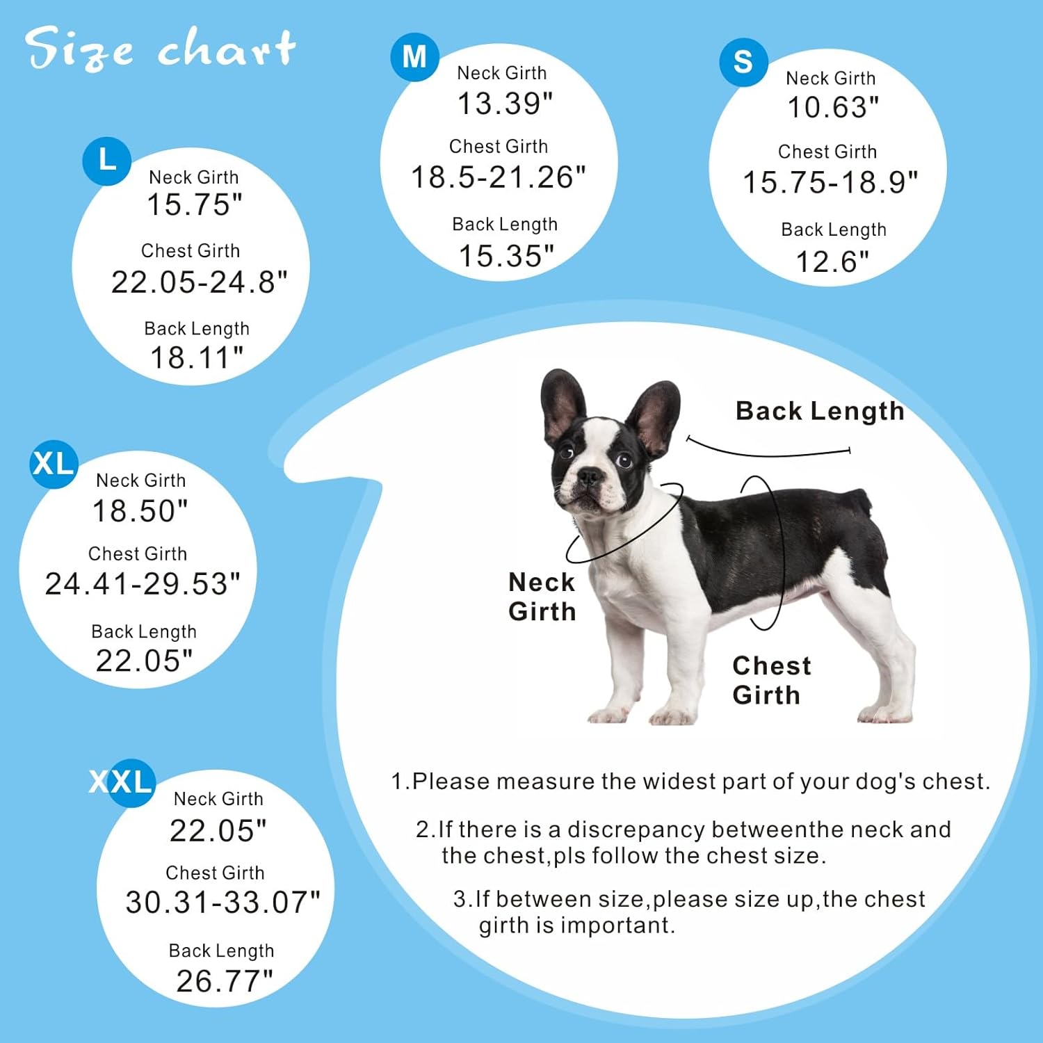 • GRÖSSEN-TIPP: Bitte messen Sie Ihren Hund und überprüfen Sie die Grössentabelle vor dem Kauf! Wählen Sie Ihre Grösse anhand des Brustumfangs, dann stellen Sie sicher, dass der Halsumfang und die Rückenlänge übereinstimmen.