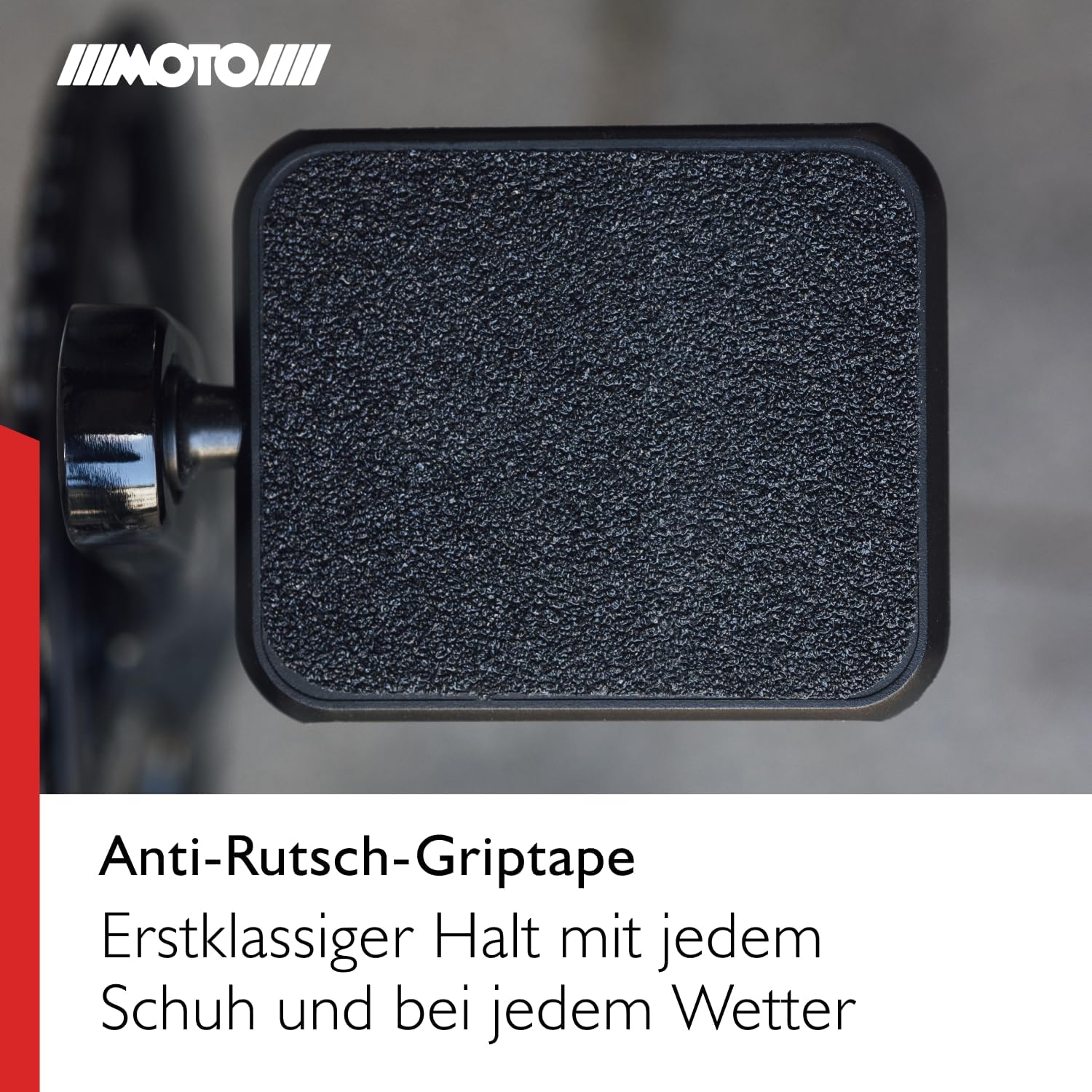 - ✅ MOTO´S SIND SICHER: keine Pins, keine Kanten und mehr Grip = mehr Trittsicherheit = mehr Fahrspass.