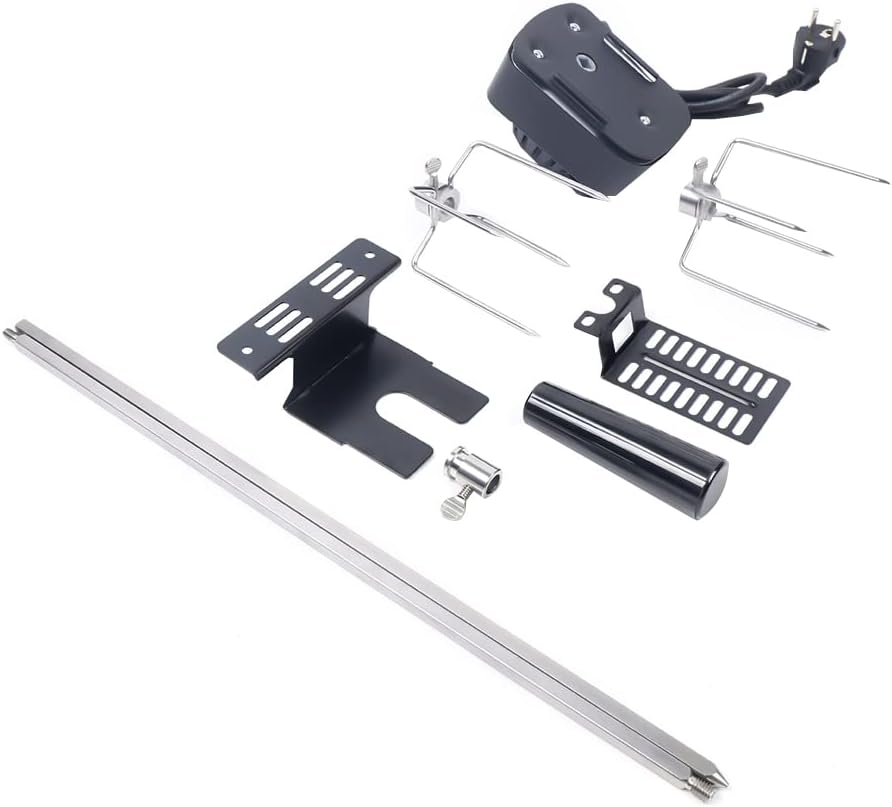 - 🍖 Angetrieben wird der Edelstahl-Spiess des Spanferkelgrills Motorleistung: 2 - 3 U / m (Umdrehungen pro Minute) mit 4 Watt.Der Motor verpackt bis zu 10 kg Lebensmittel gleichmässig verteilt.
