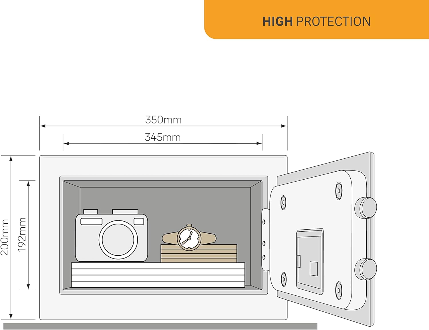 • Hohe Sicherheitssicherheit: Laser-geschnittene Stahltüren und Anti-Saw-Verriegelungsschrauben, die vor Werkzeugen schützen, bieten hohe Sicherheit für Ihre wertvollen Dokumente und Wertsachen.