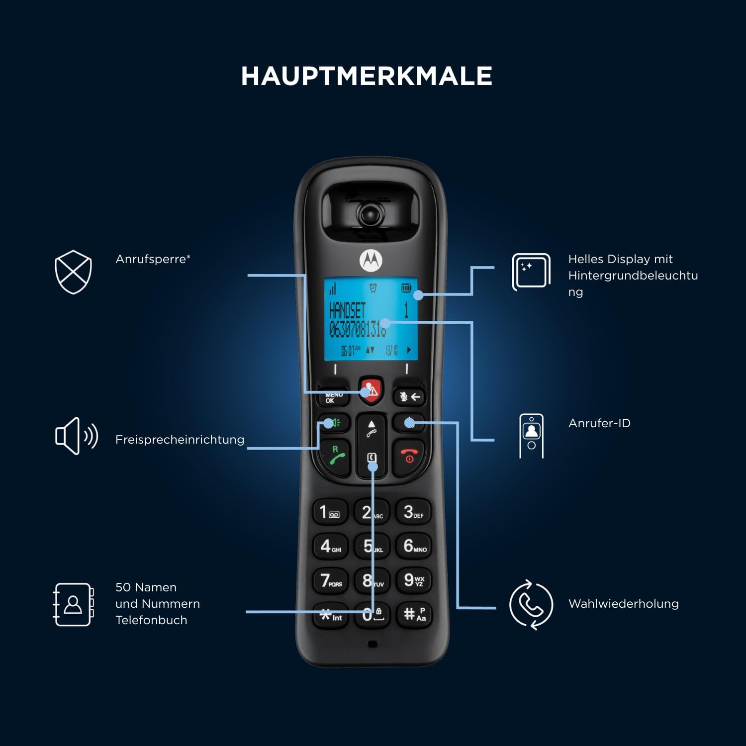 - Motorola Cd4001 Negro Teléfono Fijo Inalámbrico Con Pantalla Y Teclado Retroiluminado