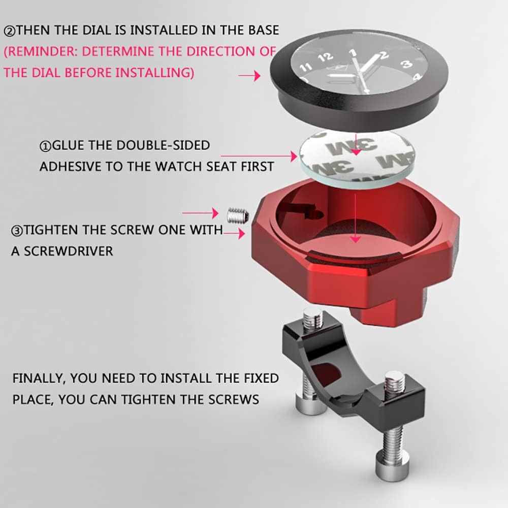 - 【Einfach zu installieren】 --- Ausgestattet mit einem Installationsschlüssel und Klebeband ist es einfach und schnell, die Uhr an Ihrem Motorradlenker zu installieren.