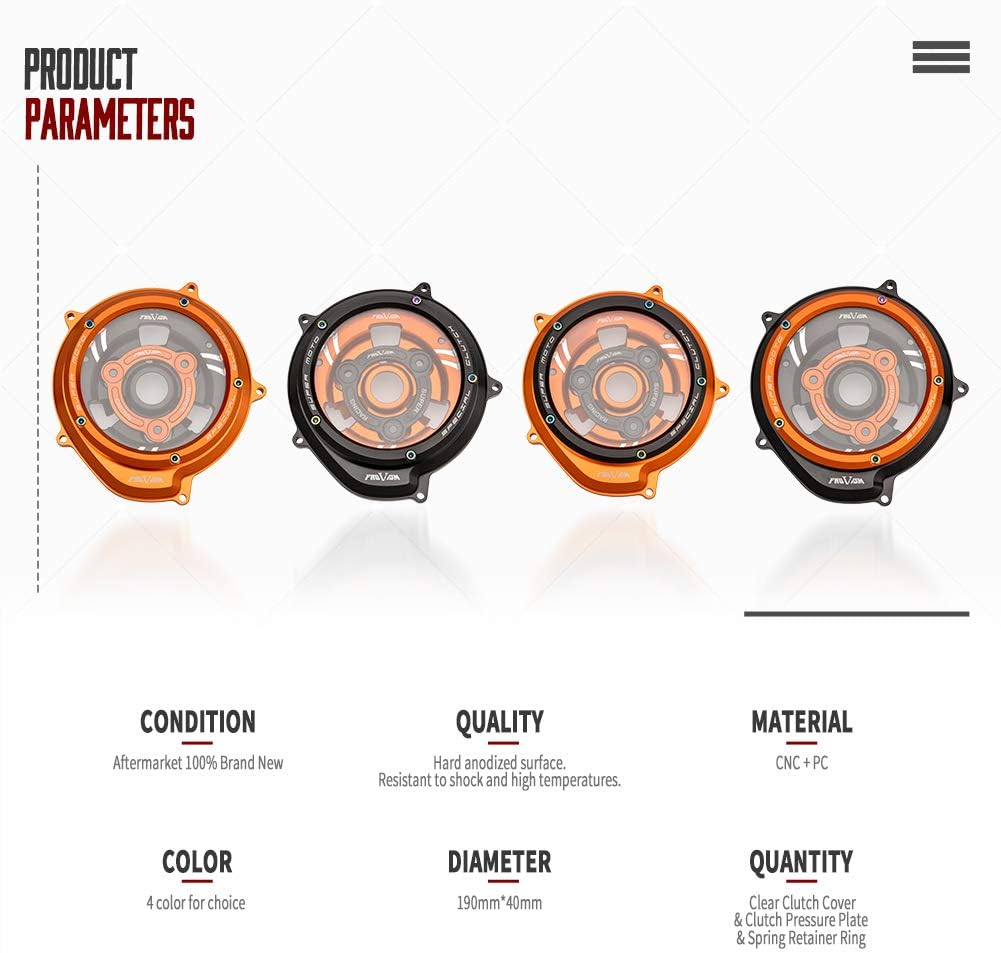 • đź’ˇ Material: – Gute Qualität, CNC-gefräst aus massiver Billet-Legierung. - Die klare Oberfläche besteht aus PC und ist stoss- und temperaturbeständig. đź’ˇ Im Lieferumfang enthalten: – Durchsichtiger Kupplungsdeckel – Kupplungsdruckplatte –