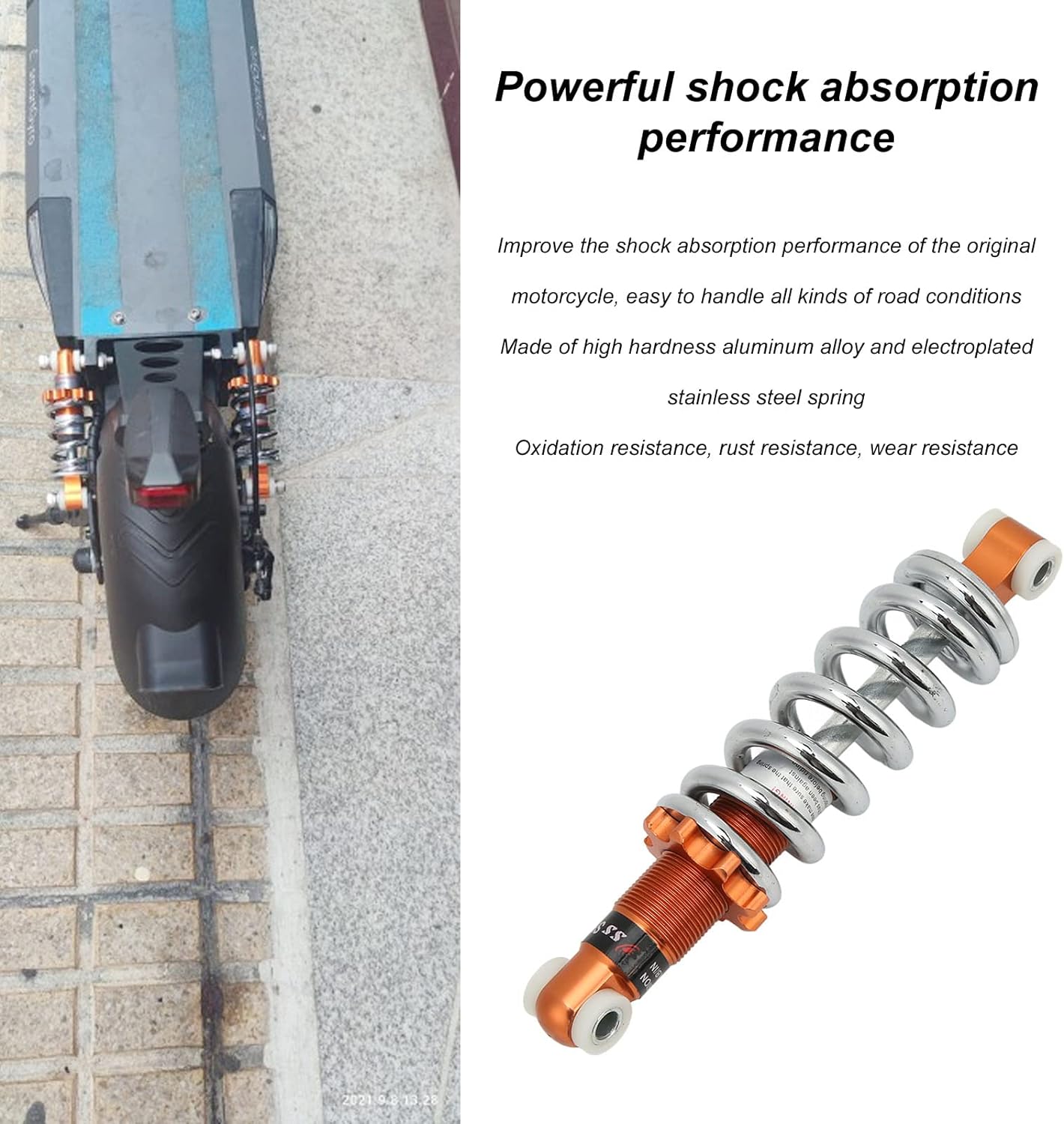 - Superstabile Leistung: Die plattierte Edelstahlfeder des Fahrrad-/Motorrad-Stossdämpfers trägt dazu bei, Stösse auf unebenen Strassen schnell zu absorbieren, was die Sicherheit erhöht und dafür sorgt, dass Sie sich wohler fühlen. Gleichzeitig