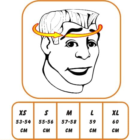 - Kopfumfang XS (53-54cm) S (55-56cm). M (57-58cm). L (59-60cm). XL (61-62cm)..XXL:(63-64cm) .