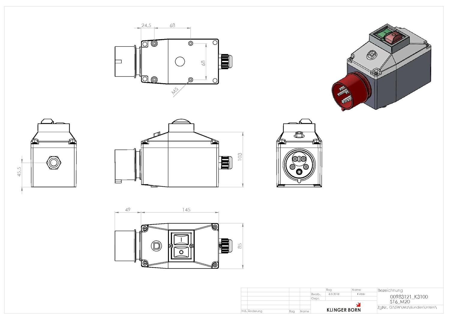- Motorschutzschalter ISKRA MS25 6,3-10A in Gehäuse mit CEE-Kragenstecker