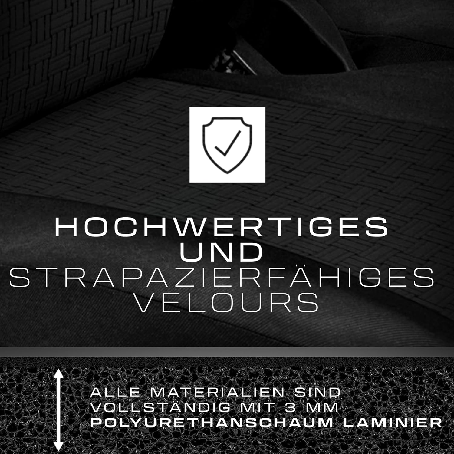 - Dreilagiges Material: Die Schonbezüge für Autositze sind aus dreilagigem Material gefertigt und zusätzlich in stark beanspruchten Bereichen verstärkt. Sie wirken als robuste Autositz Schutz und sind ideal für lange Fahrten.