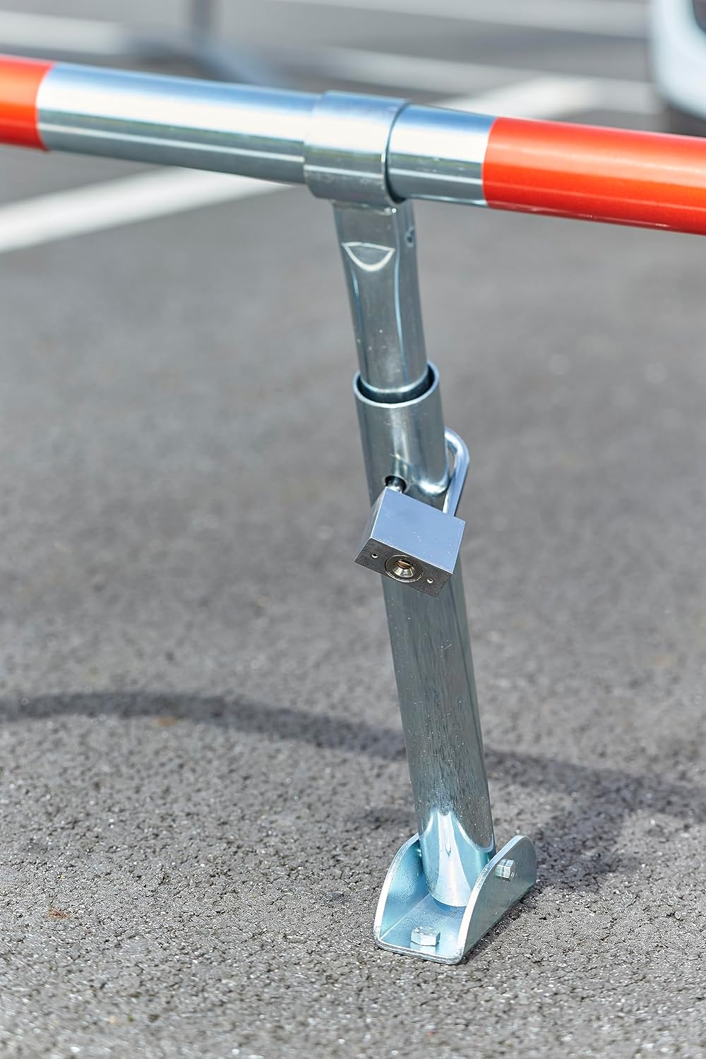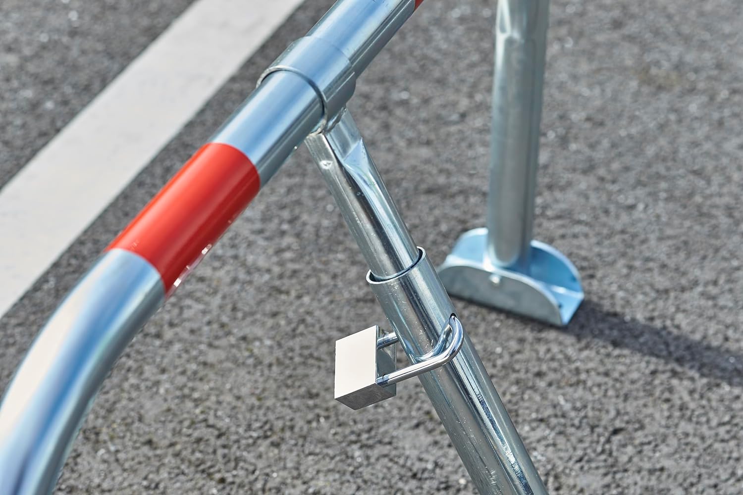 - - Einfache Verriegelung mit Vorhängeschloss (mitgeliefert) - Zum Aufschrauben (Schrauben und Dübel mitgeliefert) - Stahlrohr verzinkt Ø 35 mm - Rote Warnmarkierung