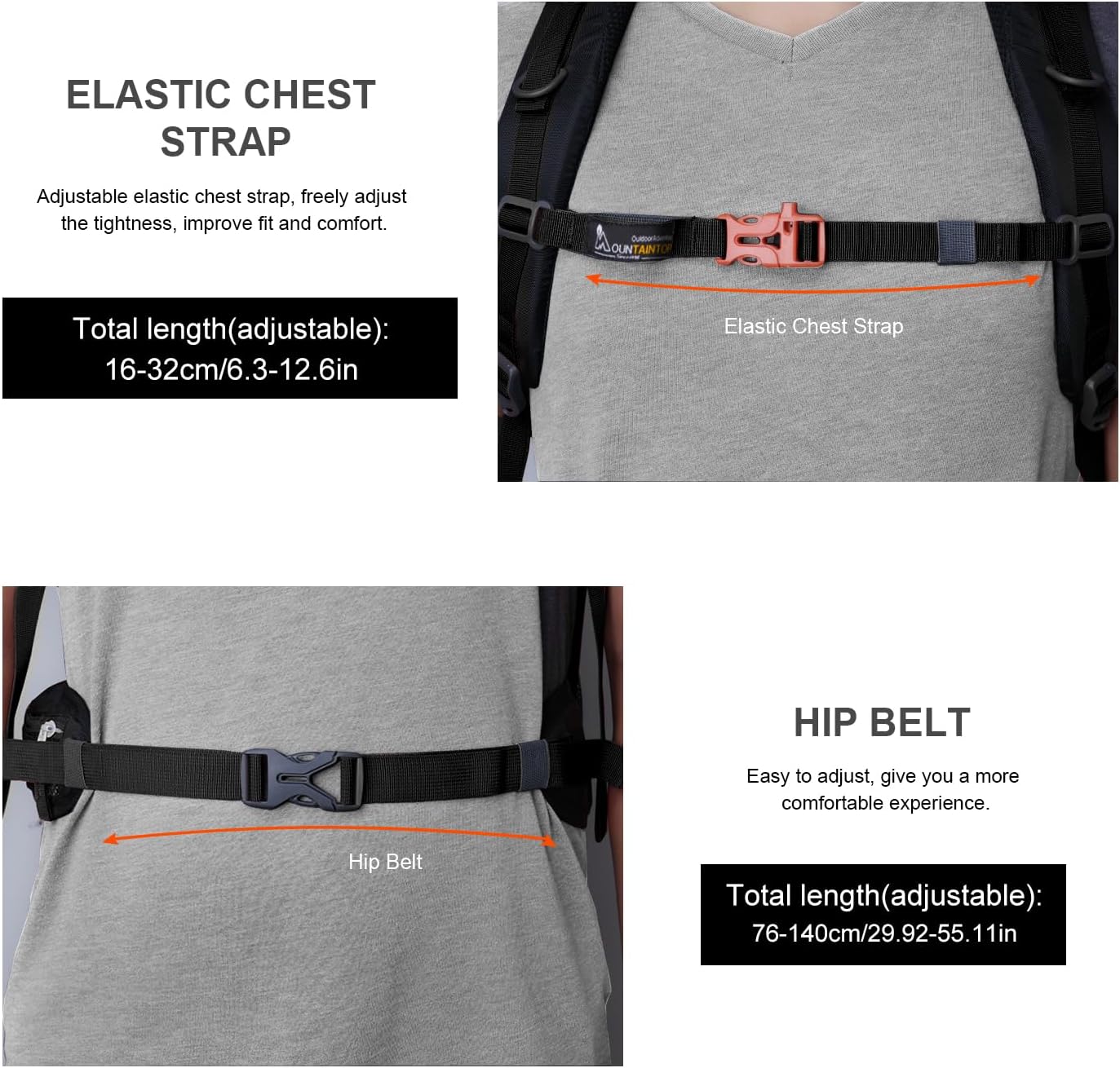 - ☞【Viel Stauraum】Trekking reiserucksack ist mit mehreren Taschen ausgestattet, in denen Sie Ihre Ausrüstung verstauen können. 1 grosses Reissverschluss-Hauptfach, 2 geräumige Fronttaschen, 2 seitliche elastische Netztaschen und eine