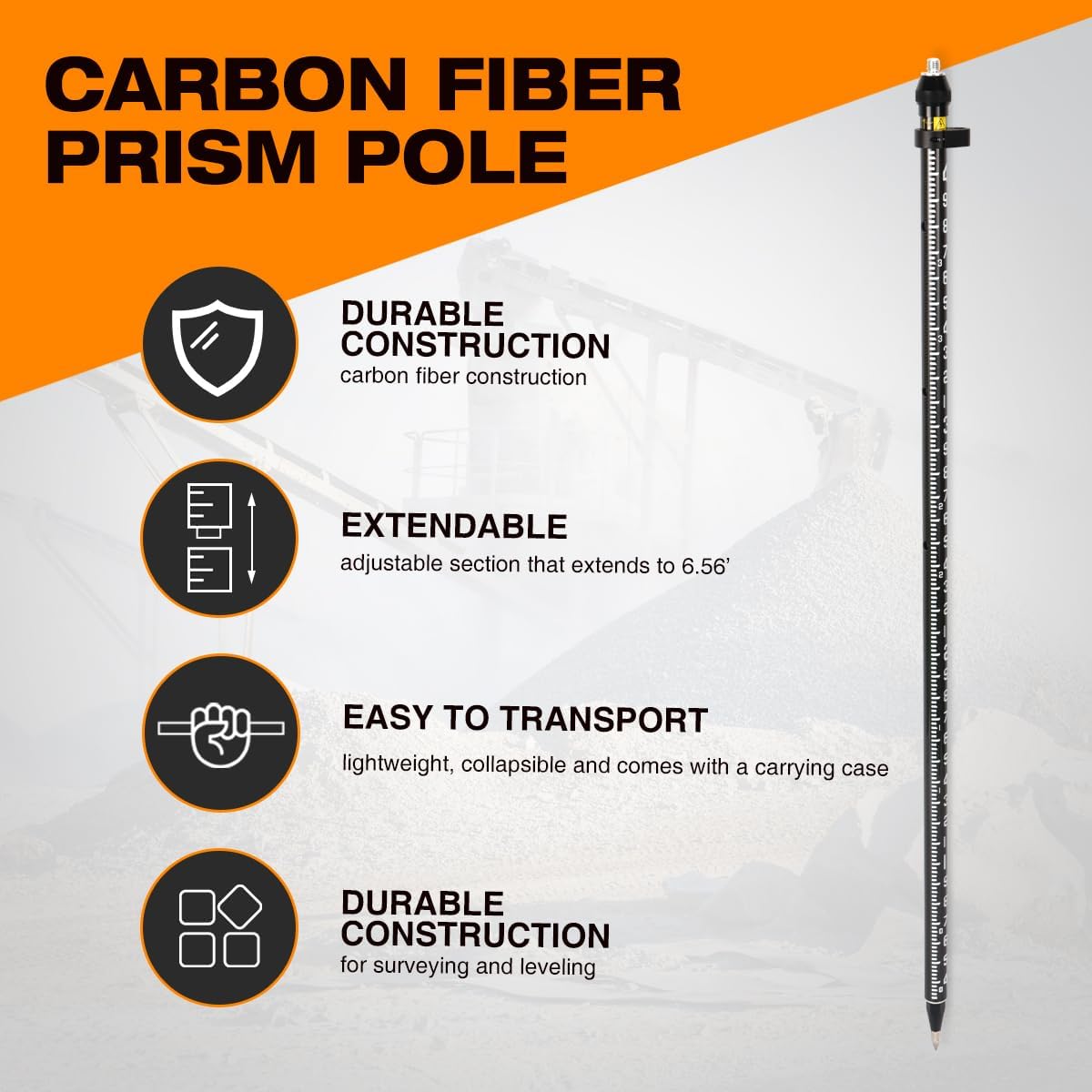 - Kohlefaser GPS-Stange Schnappverschluss verriegelt bei 1,6 m, 1,8 m und 2,0 m.