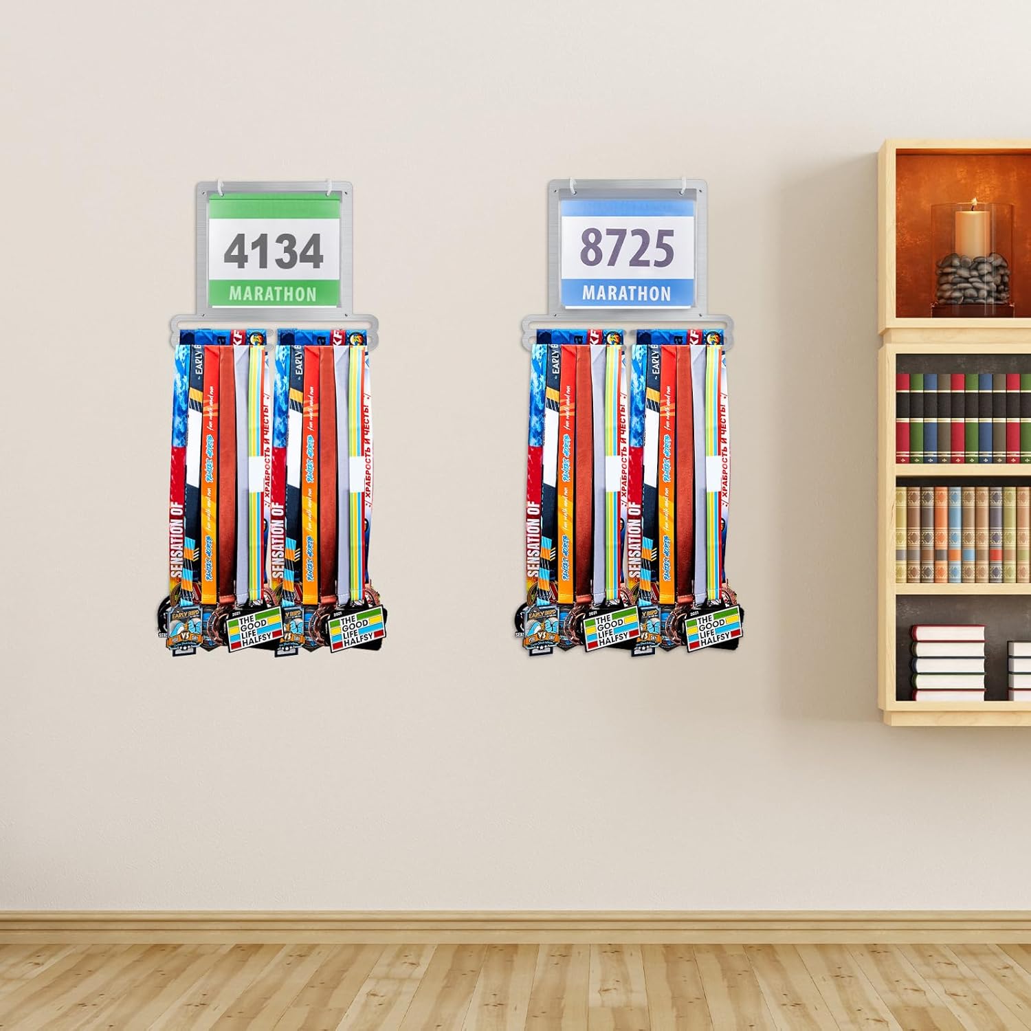 - Zeige deinen Stolz: Das Laufmedaillenregal mit Startnummernhalter schützt und präsentiert deine Sammlung von Startnummern und Medaillen von verschiedenen Leichtathletik-Rennen, 5Ks, Strassenrennen, Ultras und anderen Sportveranstaltungen und Erfolgen,