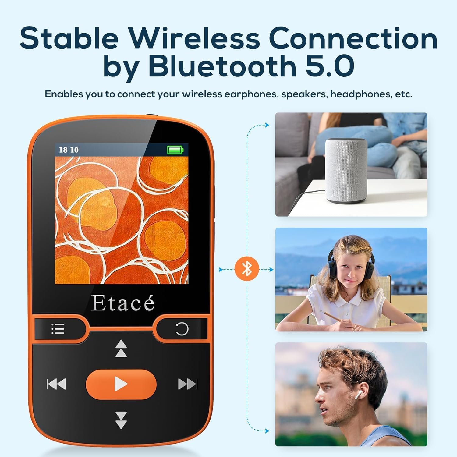 - 🎧KABELLOSE ODER KABELGEBUNDENE MUSIK NACH WAHL- Angetrieben von Bluetooth 5.3 stellt dieser mp3 player bluetooth eine stabile Verbindung mit Ihren Wireless In‐Ear-Kopfhörer, Lautsprechern oder kabellos bluetoothKopfhörer. Es hat auch eine