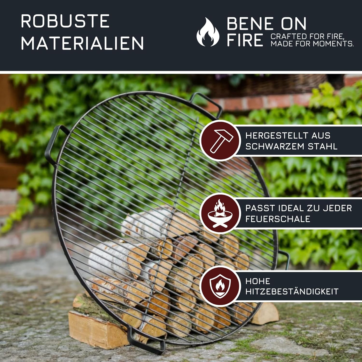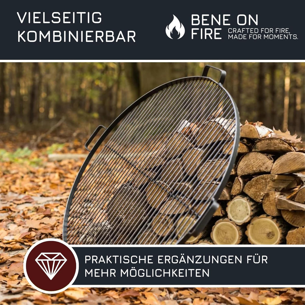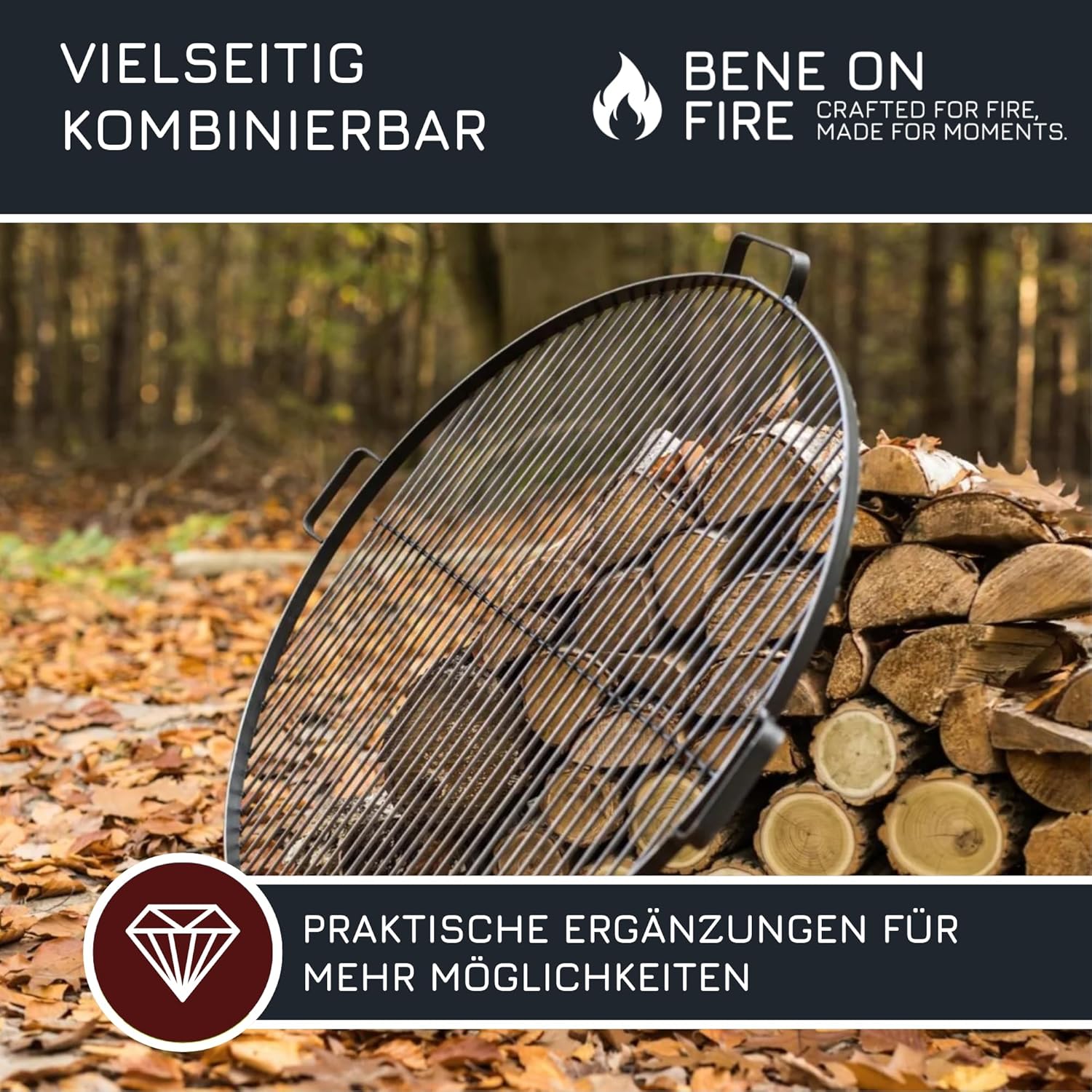 - Grillen über offenem Feuer: der runde Grillrost Ø 60 cm verwandelt jede Feuerschale in einen Grill und bietet Platz für Fleisch, Gemüse, Brot oder Fisch – für authentisches Outdoor-Kochen mit echtem Feueraroma