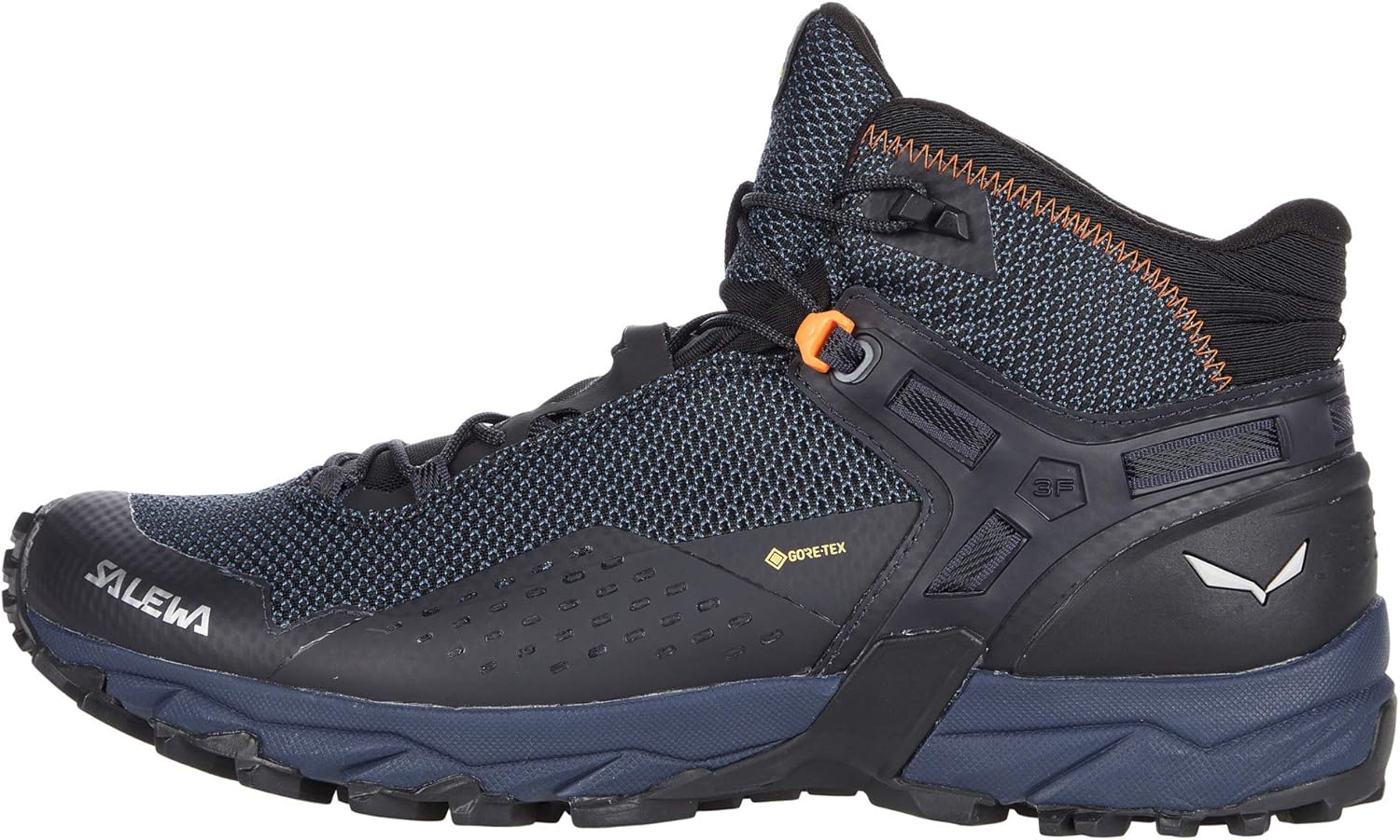 PRODUKTBESCHREIBUNGEN Leistungsstarke Sohle : Der Ultra Flex 2 Mid verbindet die Eigenschaften eines Wanderschuhs – zuverlässiger Schutz auf gemischtem Berggelände– mit der Beweglichkeit eines Trailrunning-Schuhs. Sein zentrales Element ist die leistungsstarke POMOCA Sohle, die exklusiv in Zusammenarbeit mit SALEWA entwickelt wurde. Sie führt die Bewegung des Fusses und fördert ein natürliches Abrollen sowie einen effizienten, energiesparenden Übergang vom Aufkommen der Ferse bis zum Abstossen mit den Zehen. Die Gummimischung und das spezielle Stollendesign sorgen für sicheren Halt und Haftung auf trockenen und nassen Oberflächen– bei unterschiedlichsten Gelände- und Witterungsbedingungen. Wasserdicht, atmungsaktiv, flexibel und sicherDer Schuh hat ein leichtes Obermaterial und einen halbhohen Schaft und verbindet so Beweglichkeit und Halt. Die GORE-TEX Extended Comfort Membrankonstruktion hält deine Füsse bei nassen und schlammigen Bedingungen trocken. Innen sorgt ein atmungsaktives OrthoLite Fussbett für verbesserte Polsterung, leitet Feuchtigkeit ab und bietet deinen Füssen ein kühleres, trockeneres Tragegefühl. Unser patentiertes SALEWA 3F System verbindet den Spannbereich mit Sohle und Ferse und garantiert so Flexibilität, einen präzisen Sitz und festen Halt am Knöchel. Der Flex Collar gibt dem Knöchel gleichzeitig mehr Bewegungsfreiraum nach hinten, was dir beim Abstieg hilft. Der Ultra Flex 2 Mid ist der ideale Schuh für Speed Hiking und andere temporeiche Aktivitäten auf ganz unterschiedlichen rauen Geländearten.