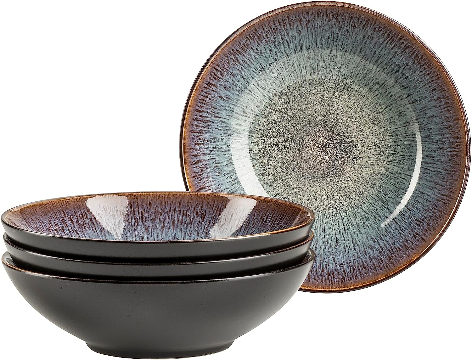 - Auf jeder Schüssel in diesem Set fliessen auf der Innenseite wunderschöne Naturfarbtöne mit Vintage Charakter von Grün über Rotbraun und Blau bis Beige individuell ineinander, so dass jeder tiefe Teller ein einzigartiges Farbmuster aufweist