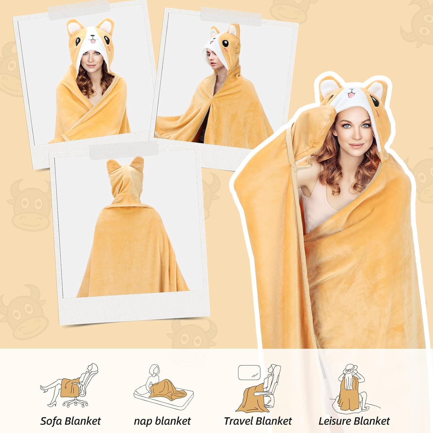- 【Einzigartiges Design】 Unsere Kapuzendecke hat einen grossen Hut mit Cartoon-Muster, warme Fäustlinge und 4 praktische Knöpfe. Die übergrosse Kapuzendecke eignet sich sehr gut als Umhang beim Fernsehen in einer kalten Nacht oder beim Camping.