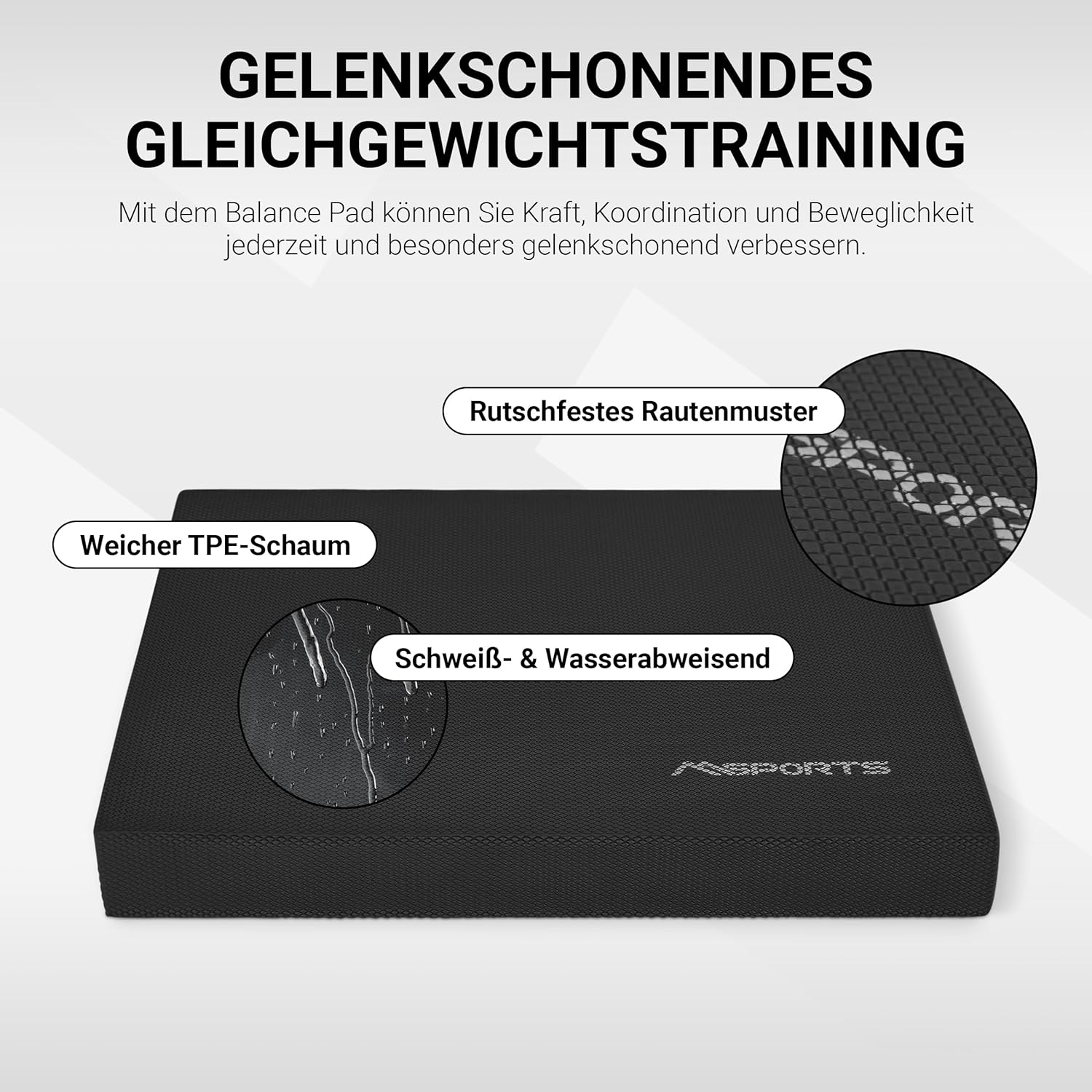 - MSPORTS BALANCE PAD – Das MSPORTS Balance Pad ist geeignet für PROFESSIONELLE PHYSIOTHERAPIEN oder für das Training zu Hause. Mit dem Pad sind Sie PERFEKT ausgerüstet für REHABILITATION, Propriozeptives Training und für das Vorbereitungstraining