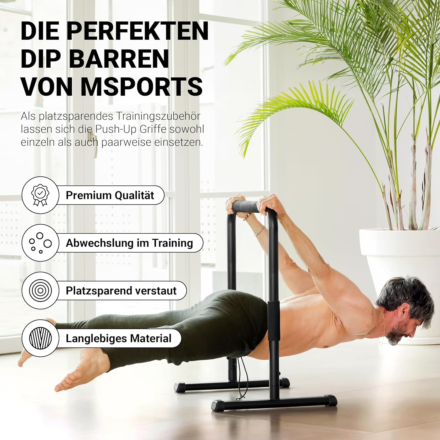 - Eignet sich für den PROFESSIONELLEN Einsatz im Studio (STUDIO-QAULITÄT) oder für das Training zu Hause. Mit den Msports Minibarren sind Sie PERFEKT ausgerüstet. Unsere Dip Barren wurden zusammen mit Fitnesstrainern entwickelt, hierbei wurde auf die