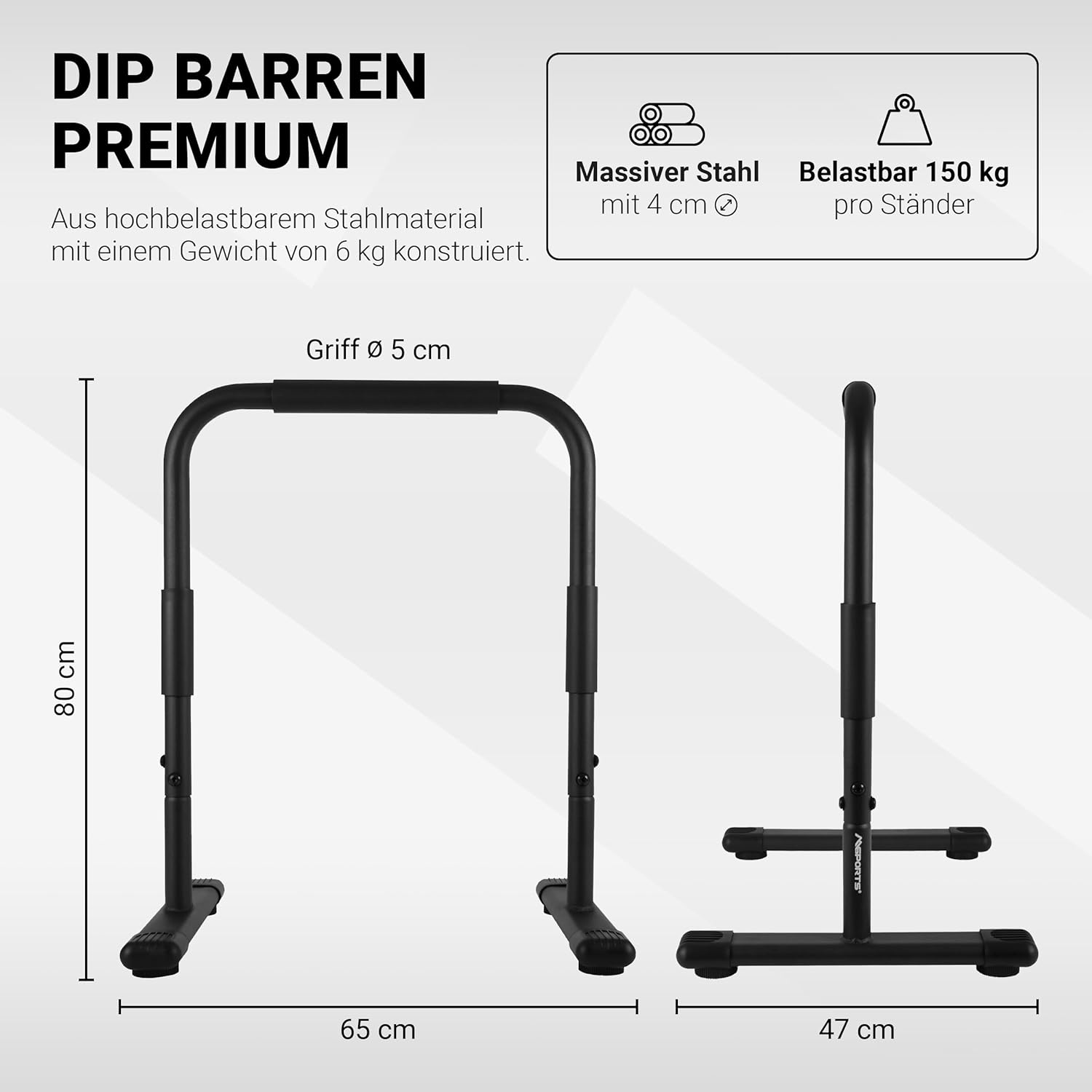 - DATEN UND VERSAND – Lieferumfang: 1 Paar Fitness Barren | Material: Aus hochwertigem Stahl | Masse: 80 cm Hoch, 65 cm Lang, 47 cm Breit | Griff Durchmesser: 5 cm | Farbe: Schwarz | VERSAND – erfolgt über den Paketdienst DHL, auch an Packstation.
