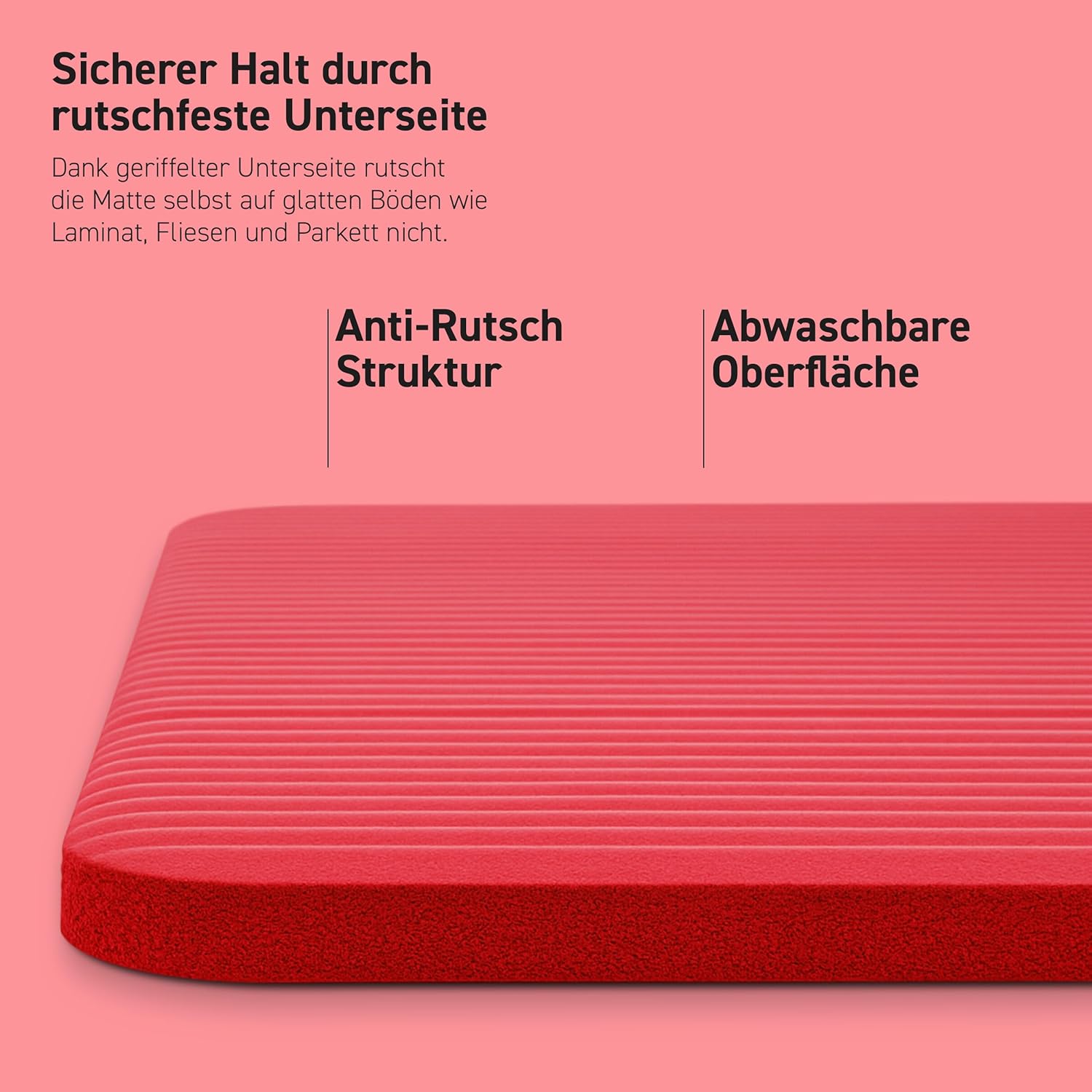• ๐‡๐Ž๐‚๐‡๐„๐๐“๐–๐ˆ๐‚๐Š๐„๐‹๐“๐„ ๐™๐”๐’๐€๐Œ๐Œ๐„๐๐’๐„๐“๐™๐”๐๐† โ€“ Die Trainingsmatte mit strapazierfรคhiger Beschaffenheit wird aus angenehmen und rutschfesten Synthesekautschuk (NBR) - Material