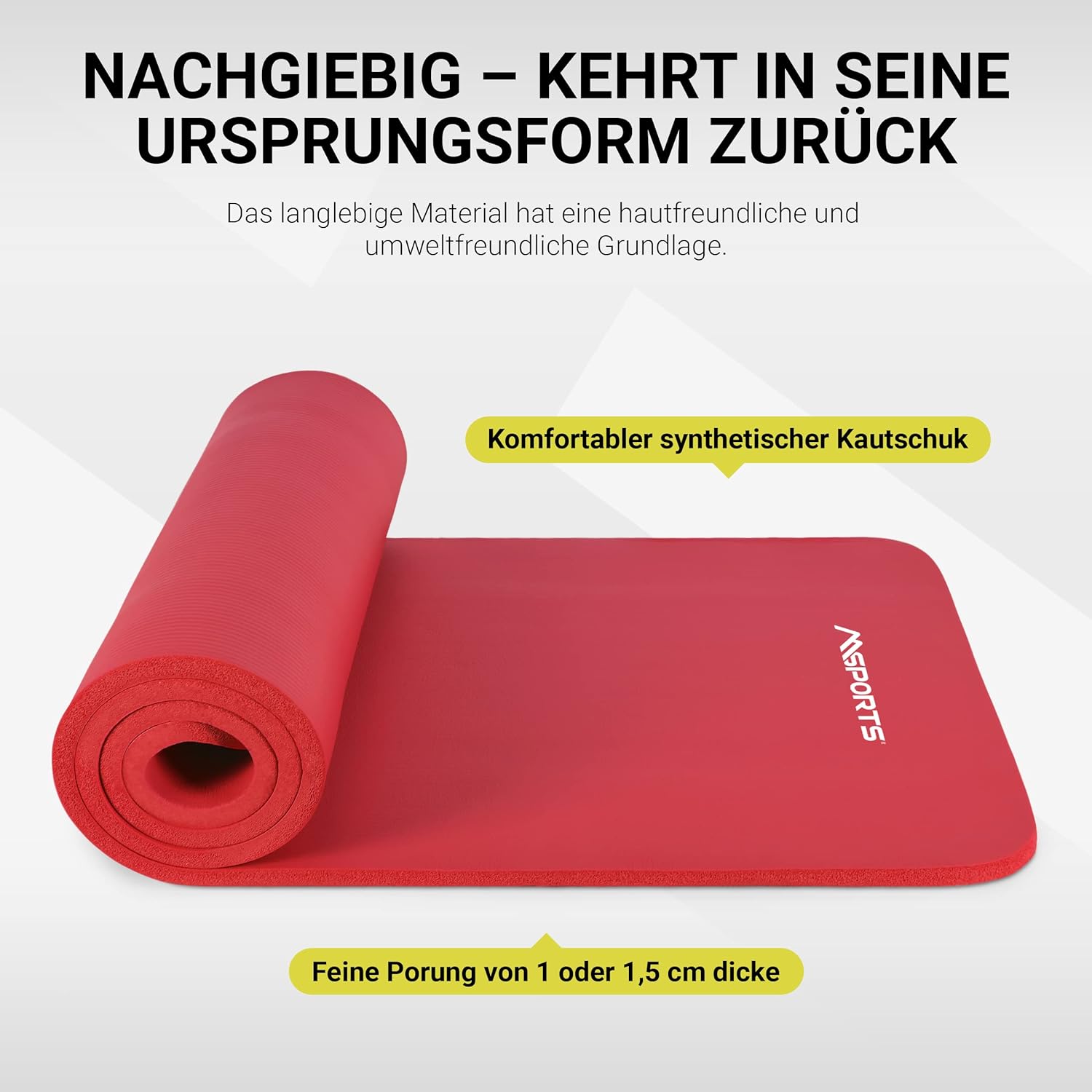 • DATEN UND VERSAND – Material: NBR (synthetischer Kautschuk) | Farbe: auswählbar siehe Bilder und Variationen | Masse: 183 x 61 x 1,0 oder 1,5 cm | Lieferumfang: 1x Msports Gymnastikmatte in ausgewählter Farbe + Übungsposter | VERSAND - Erfolgt über Paketdienst DHL.