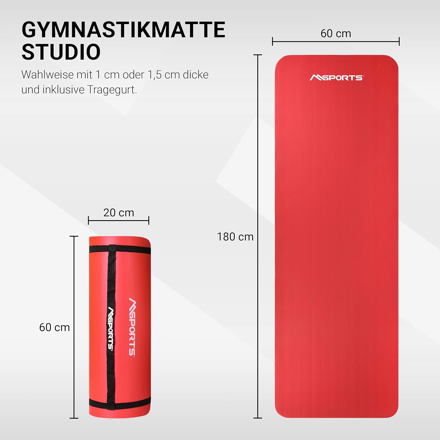 MSPORTS Gymnastikmatte Studio 183 x 61 x 1,0 oder 1,5 cm | inkl. Übungsposter und Tragegurte | Hautf