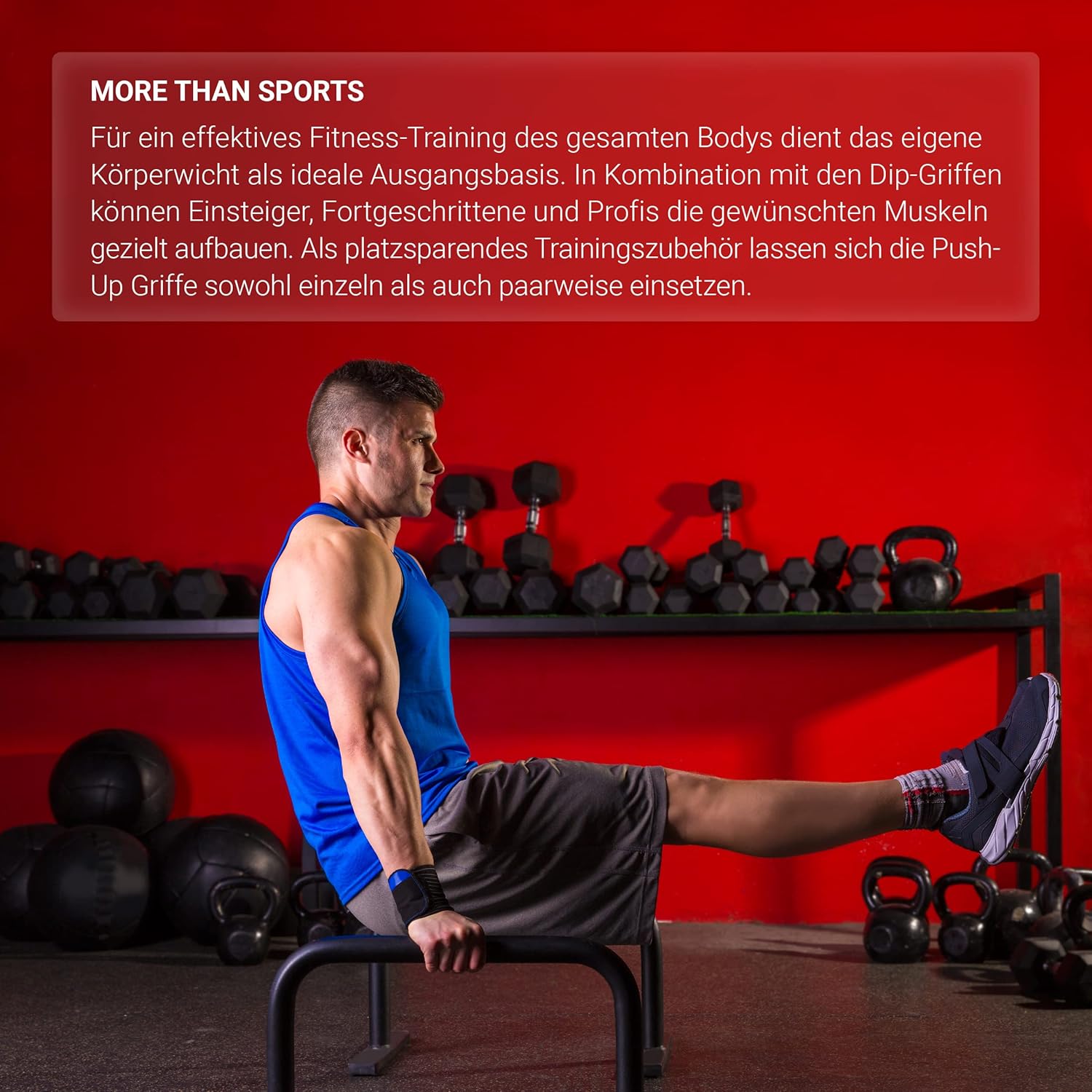 • LIEGESTÜTZE MUSKELAUFBAU FÜR DEN GANZEN KÖRPER – : Mit 4 cm Durchmesser bietet der Holm einen optimalen Griff | INTENSIVES und EFFEKTIVES Training, ob einfache Liegestütze oder Dips für den Trizeps. Eine Steigerung der TRAININGSINTENSITÄT erhält man durch die Höhe der Griffe, welche tiefere Bewegungen zulassen. MEHRERE MUSKELGRUPPEN werden durch variieren der Griffposition beansprucht.