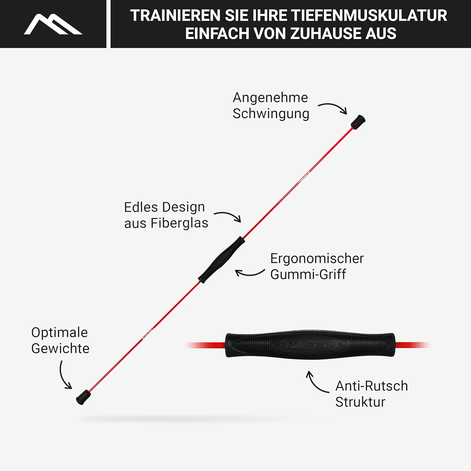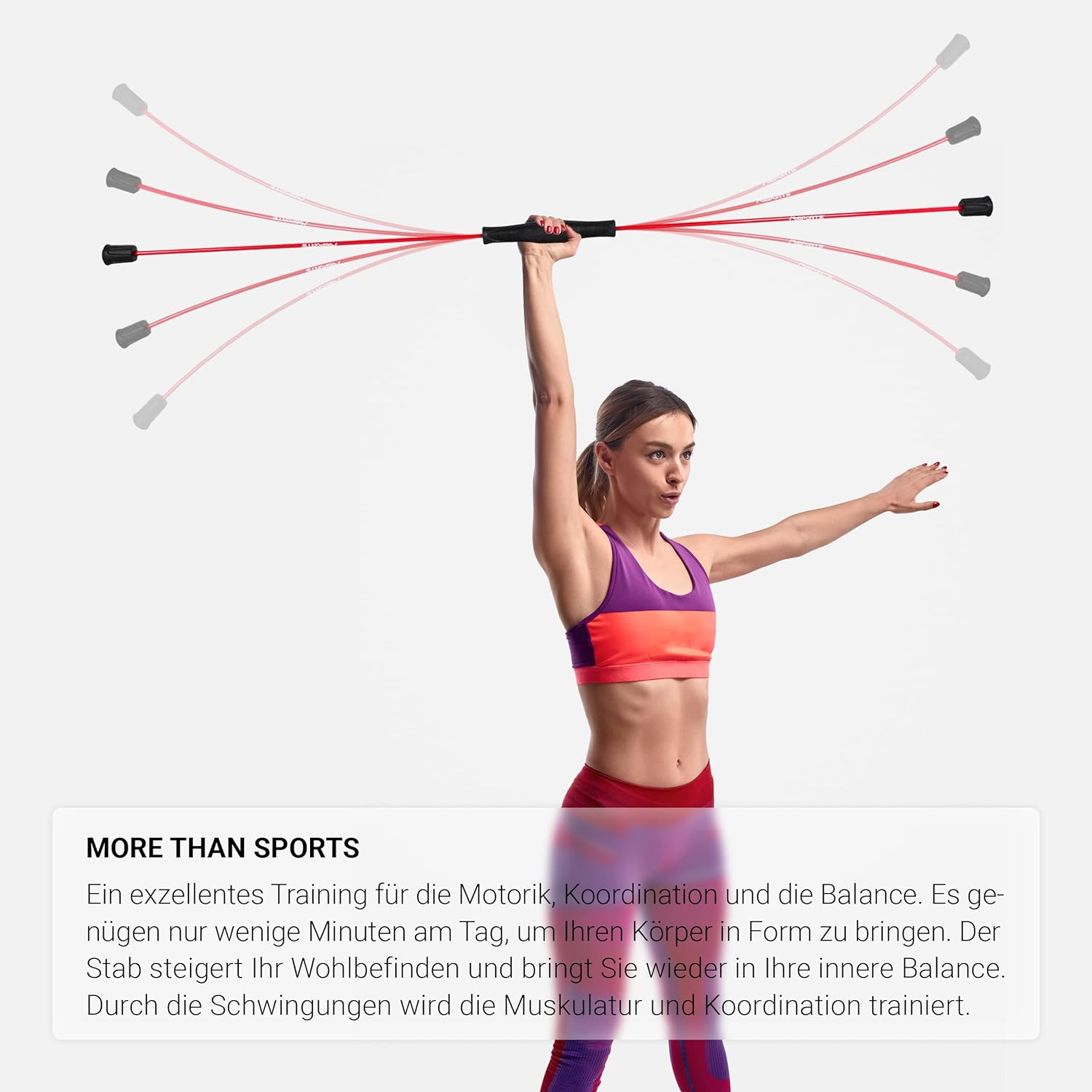 - TRAINING - Wackeltraining für deine Tiefenmuskulatur - Ist der Stab einmal in Schwingung, so muss der gesamte Bewegungsapparat versuchen, diese Vibrationen auszugleichen. Dadurch wird die Tiefenmuskulatur angesteuert und gestärkt.