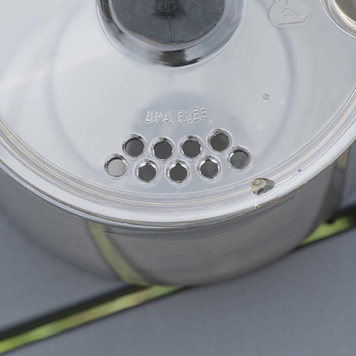 - Deckel rastet auf Topf und Schüssel ein, zum Sieben und Trinken
