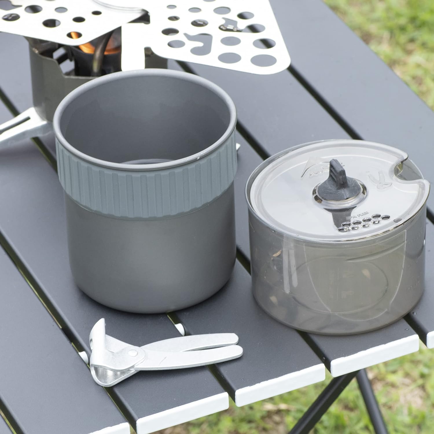 - Enthält: Hartanodisierter Aluminiumtopf (750 ml) mit isoliertem Griff, Schüssel (475 ml), Aufsetzbarer Deckel mit Trink- und Sieböffnung, Ultraleichter Topfheber