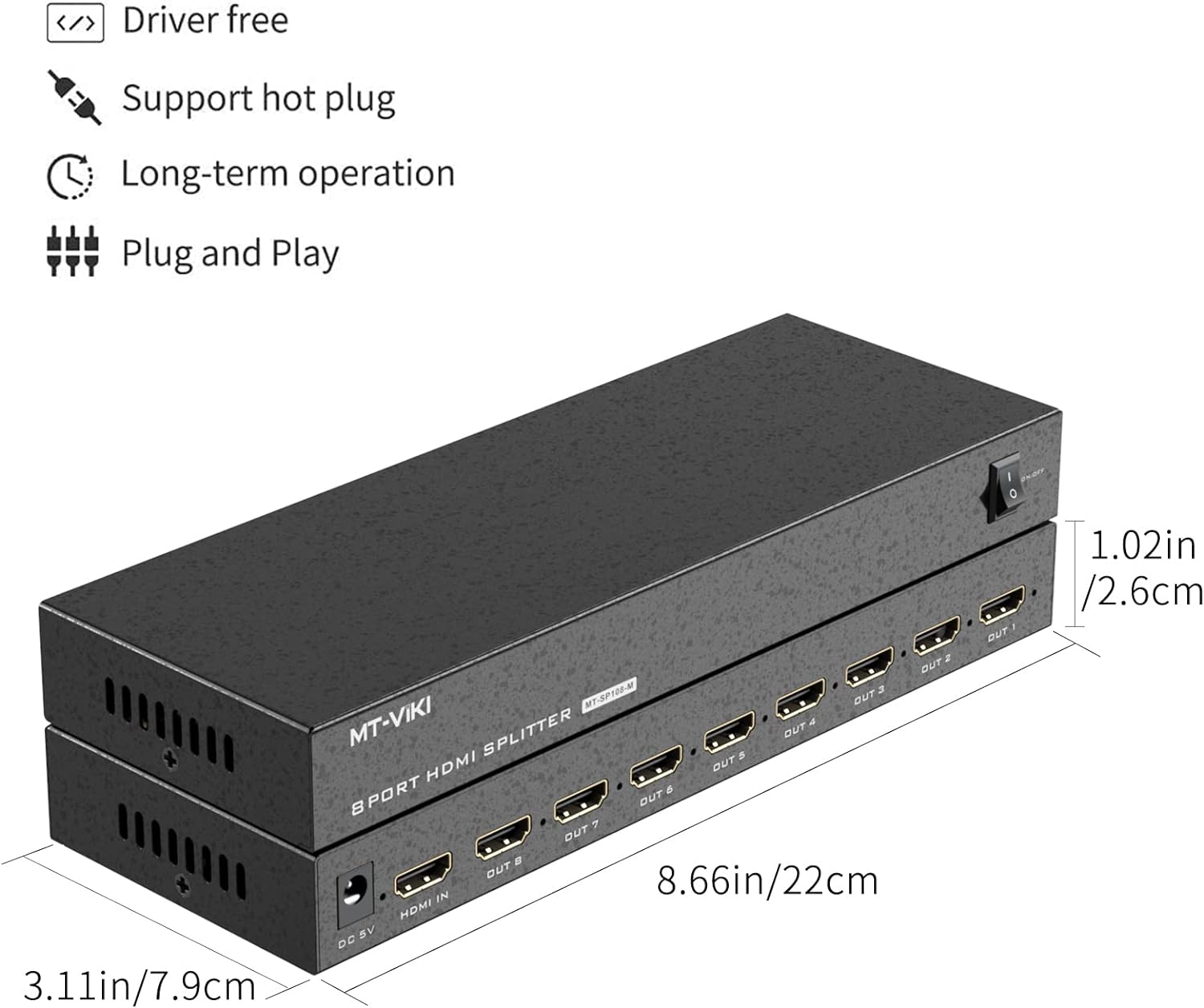 - Universal Kompatibilität: HDMI Verteiler 1 in 8 out ist mit einem Eingang, acht Ausgängen und geeignet für die meisten Geräte mit Standard-HDMI-Schnittstelle. Eingang wie Computer, XBox One, PS3, PS4 Pro, Fire Stick, Blu-Ray DVD-Player, Roku usw.