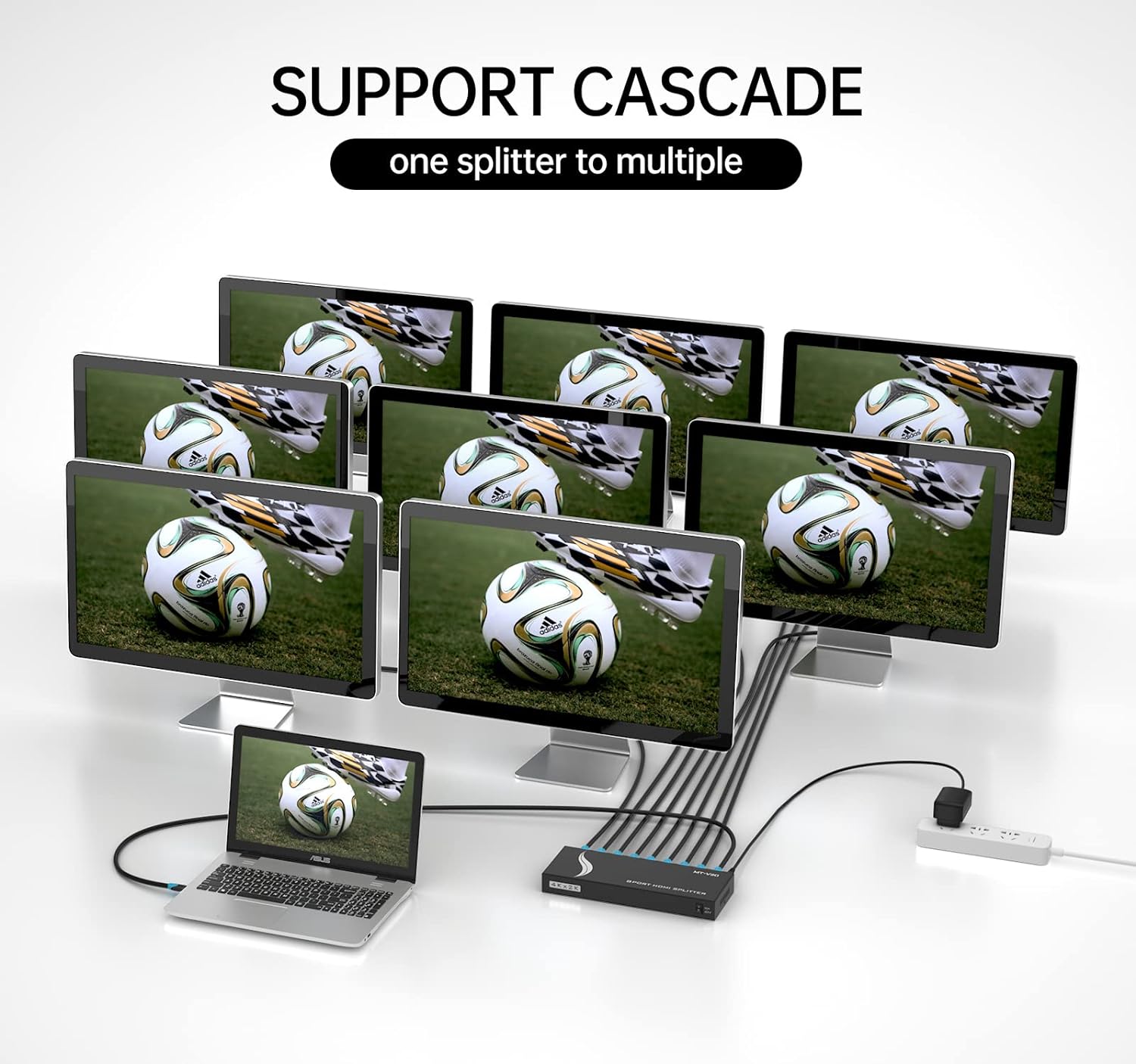 - HDMI Splitter 1 in 8 out :4K HDMI Splitter 1x8 unterstützt ermöglicht 8 Monitoren die gemeinsame Nutzung einer HDMI-Quelle in 4K HD-Videoqualität. (Nur spiegeln/duplizieren, kann nicht erweitert werden). räsentation, Schul- und