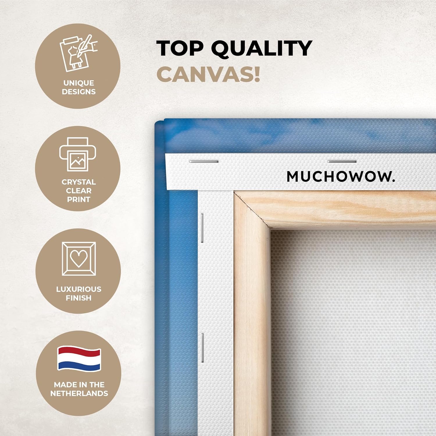 - EIGENSCHAFTEN: Unsere Leinwandbilder müssen nicht montiert werden. Der Leinwanddruck ist auf einem Holzrahmen aufgespannt und kann ohne Bohren aufgehängt werden. Der Holzrahmen hat eine Dicke von 2 cm.