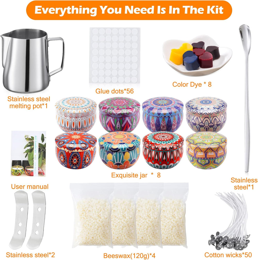 - 🌸🌸【DIY Duftkerze Geschenke Set】Alles, was Sie brauchen, um Ihre eigenen Kerzen zu Hause zu kreieren, ist in diesem Paket. Das Paket enthält 450 ml Fassungsvermögen Schmelztopf, 4 Beutel Bienenwach ,8 Farbblöcke, 56 Klebepunkte, 2